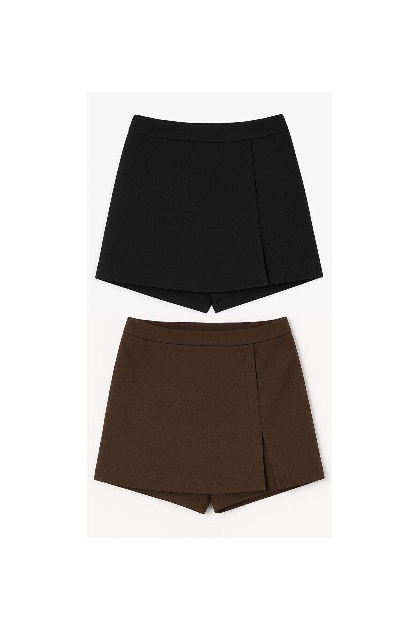 moda armanc 2li Yırtmaçlı Mini Şort Etek