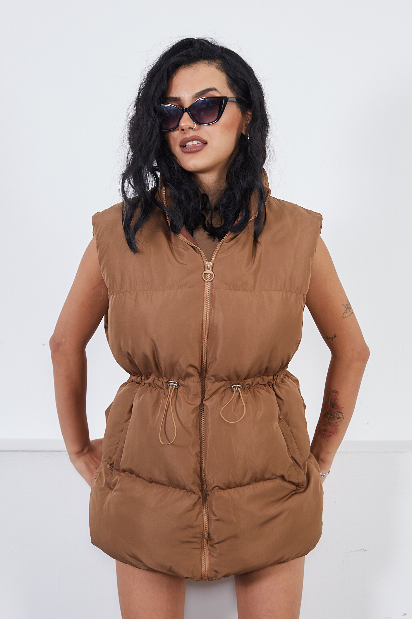 moda armanc Beli Lastikli Kadın Kahverengi Şişme Yelek