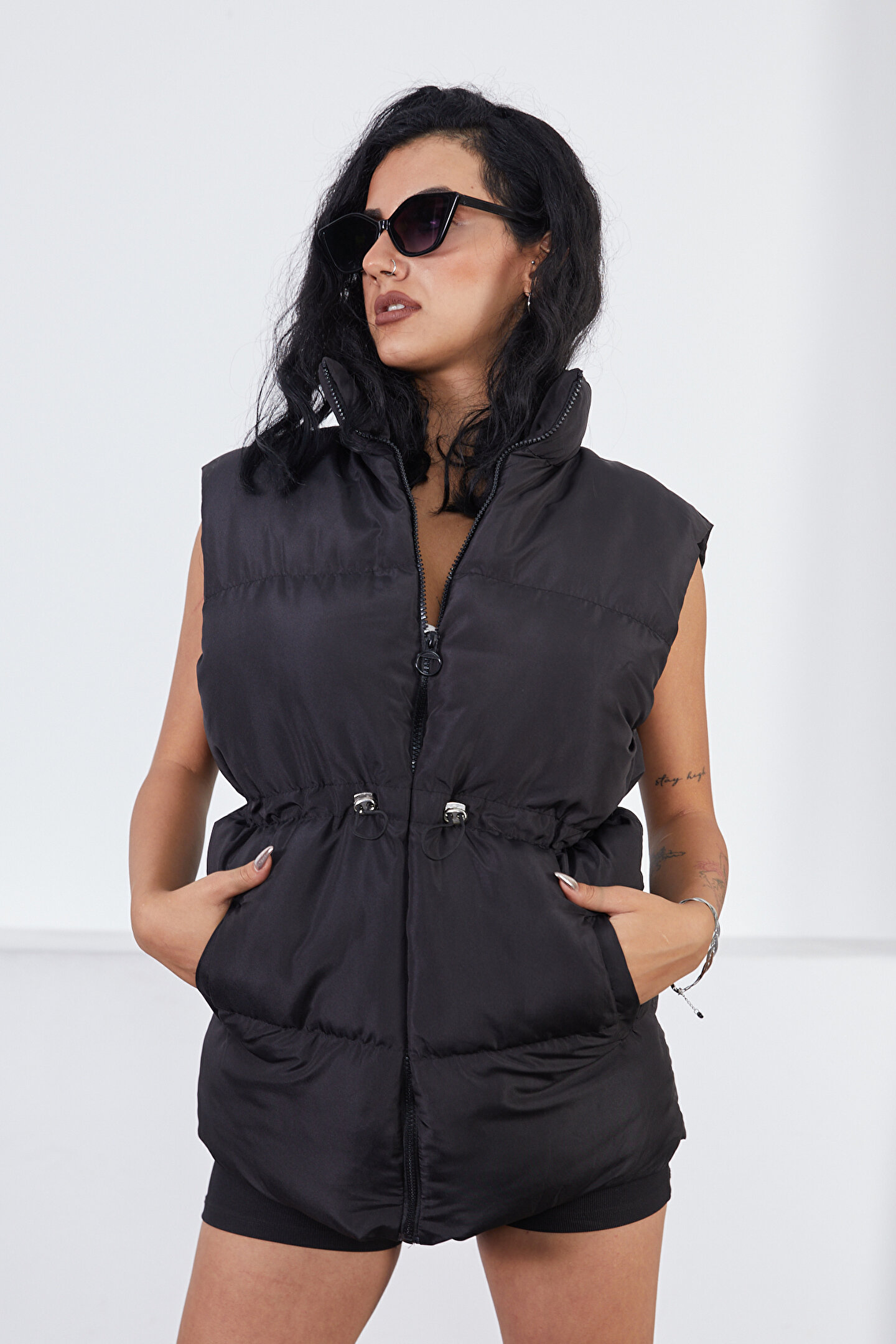 - Rahat kesimi ve kolsuz tasarımı ile günlük kullanım için ideal, hareket özgürlüğü sunan beli lastikli kadın yelek.; - Yoğun elyaf dolgu materyali ile orta kalınlıkta bir konfor sağlar ve mevsim geçişlerinde ideal sıcaklık dengesi sunar.; - Astarlı yapısı ile ekstra konfor ve şıklık kazandırırken, cildinizle doğrudan temas eden kumaşın rahatlığını hissedin.; - Düz tasarımıyla zamansız bir stil oluştururken, Basic koleksiyonun sadeliğiyle her türlü kombinle uyum sağlar.; - Relaxed silueti sayesinde rahat bir kullanım sunarken, micro dokuma tipi dayanıklılığı arttırarak uzun süreli kullanım imkanı tanır.; - Su itici özelliği ile yağmurlu havalarda bile kuru kalmanızı sağlar; su geçirmezlik konusunda ekstra koruma sunar.; - Türkiye menşeli olmasıyla yerli üretim kalitesini ve standartlarına uygunluğu garanti eder.; - Ceket yaka tasarımının yanında düz deseniyle sade ve şık bir görünüm sergiler.