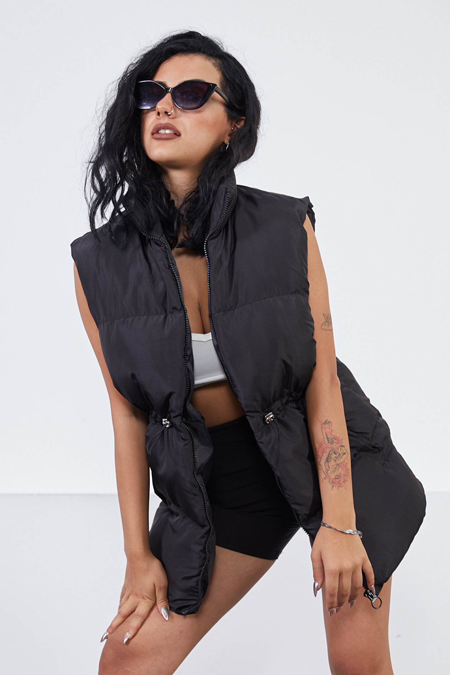 moda armanc Beli Lastikli Kadın Siyah Şişme Yelek