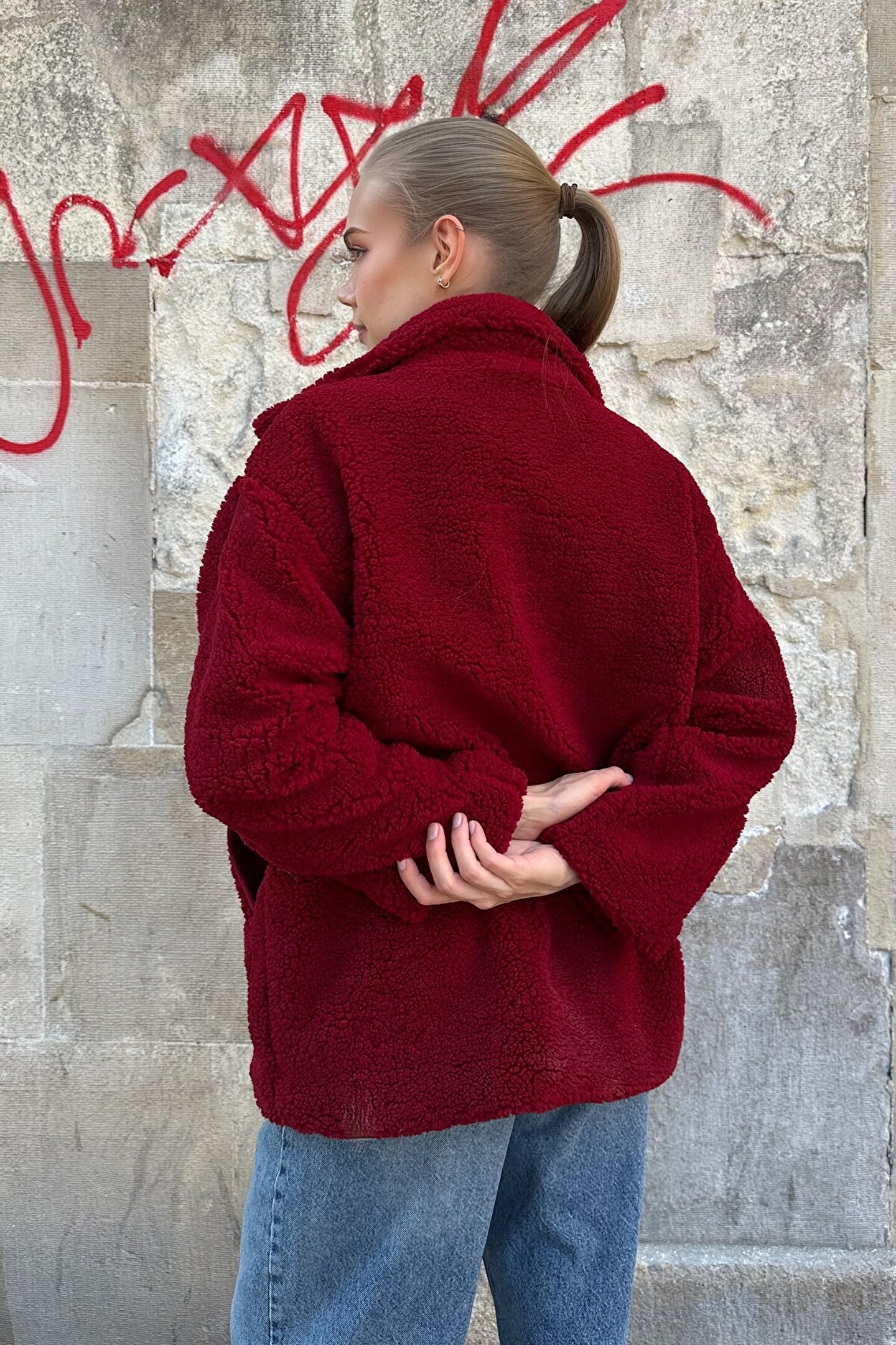 Klasik montlardan sıkıldıysan, bordo rengiyle dikkat çeken bu kadın peluş mont tam aradığın parça olabilir.; ; Yumuşacık dokusu, sıcacık tutan kumaşı ve oversize kalıbıyla hem rahatlığı hem de sokak stilini bir araya getiriyor.; ; Fermuarlı kapanışı, derin cepleri ve salaş duruşu sayesinde günlük kombinlerinden şehir gezilerine kadar her anına eşlik etmeye hazır.; ; Peluş Yumuşaklığı: Giydiğin an konforu hissettiren özel doku.; ; Oversize Rahatlık: Kat kat giyime uygun, özgürce hareket alanı.; ; Geniş Cepli & Fermuarlı: Hem şıklık hem işlevsellik.; ; Bordo Renk Etkisi: Zarif, dikkat çekici ve zamansız.; ; Ürün Boyu: 75 CM (Hem rahat hem kapatıcı bir kullanım sunar;kalçayı kapatır, soğuk havalarda tam koruma sağlar.; ) ; Manken Ölçüleri: Boy: 1.70 Göğüs:90 Bel:63 Kalça:89 cm (Üzerindeki ürün 38 (S) bedendir) ;