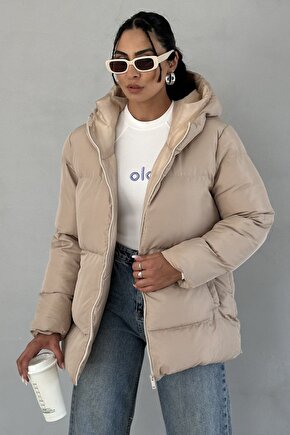 moda armanc Kadın Bej Kapüşonlu Şişme Mont