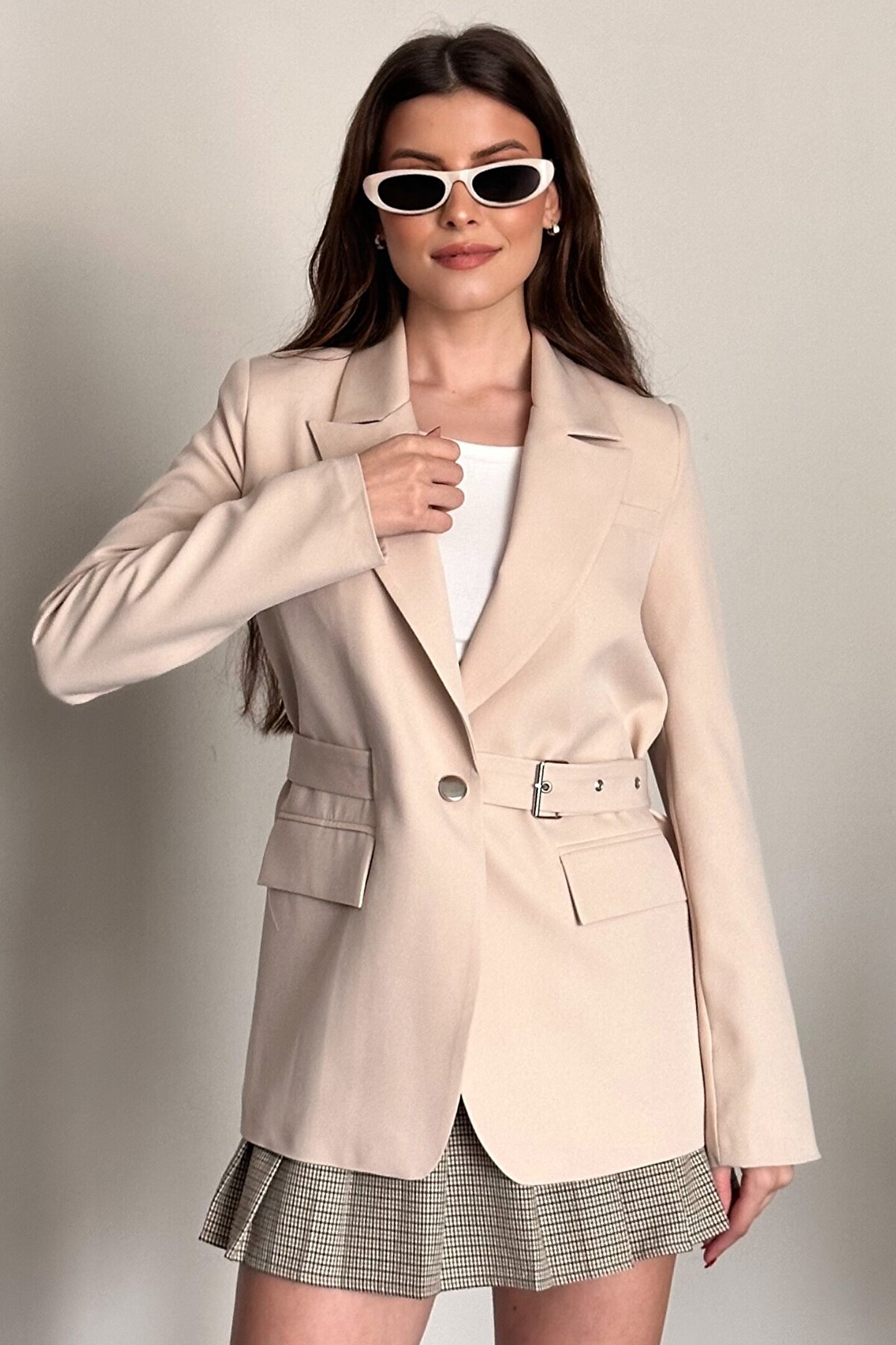 Şık duruşu ve kemer detayıyla öne çıkan bu kadın blazer ceket, günlük kombinlerden ofis stiline kadar her ortamda rahatlıkla kullanılabilir.; ; Rahat kalıbı ve tek düğmeli yapısıyla gün boyu konfor sunar.; ; Kadın blazer ceket ve kadın ceket kategorisinde zamansız bir model arayanlar için ideal tercihtir.; ; T-shirt, bluz veya gömleklerle kolayca kombinlenebilir.; Mini etek, pantolon ya da jean ile kullanıma uygundur.; ; Ne çok spor ne fazla klasik… Tam kararında bir ceket arayanlar için gardırobun kurtarıcı parçasıdır.; ; Bel kemeri ile vücuda oturan şık form ; Tek düğmeli kapama ; Mevsim geçişlerinde ideal kullanım ; Şıklığı zahmetsizce yakalamak isteyenler için ideal bir tercihtir.; ;