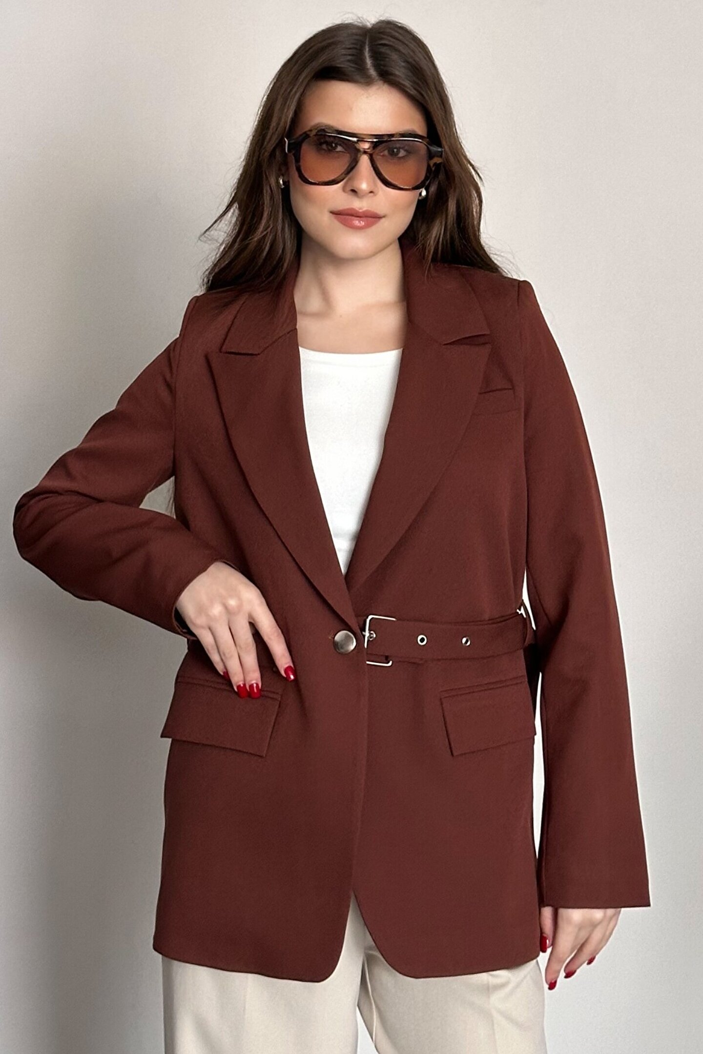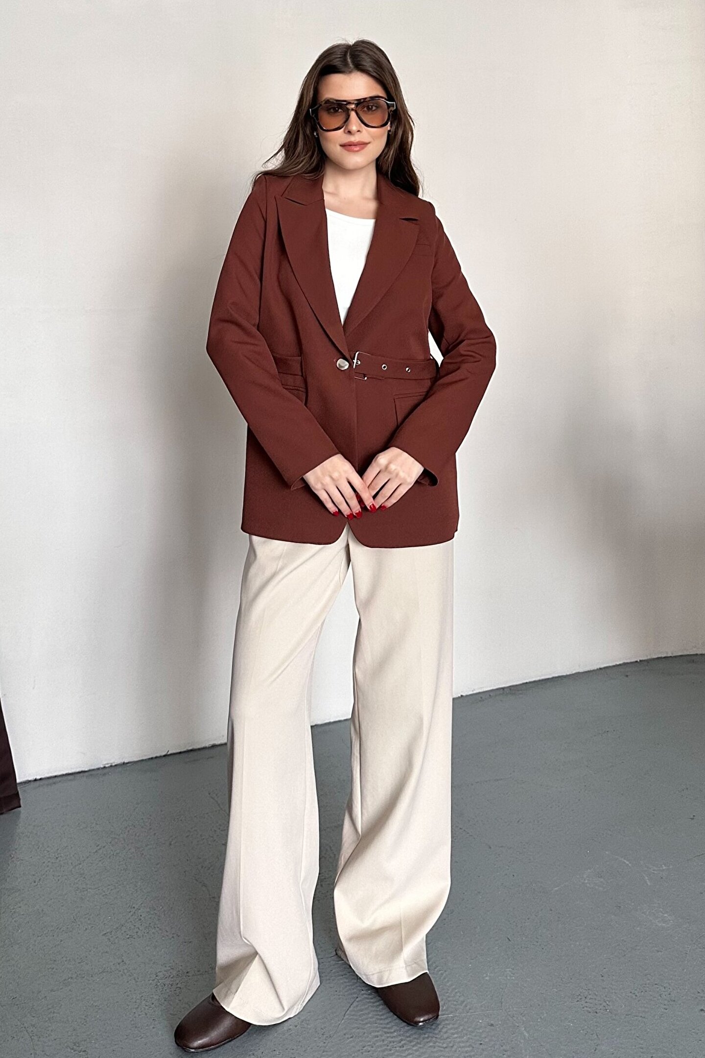 moda armanc Kadın Blazer Ceket Kemerli Şık Model – Tek Düğmeli, Rahat Kalıp Casual