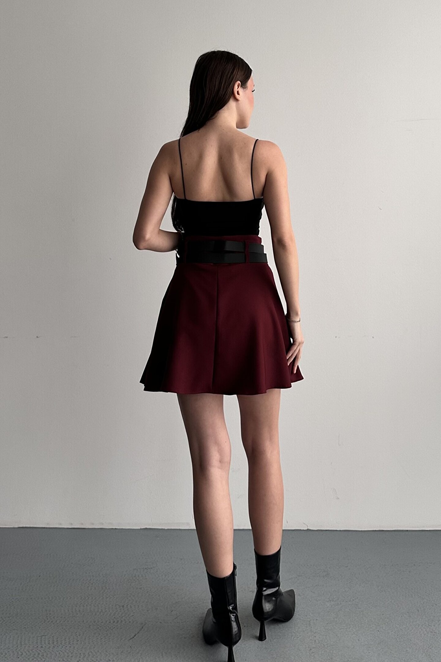 Çift kemer detayıyla öne çıkan yüksek bel pileli mini etek, günlük kombinlerin vazgeçilmez tamamlayıcı parçasıdır.; ; Modern ve güçlü stilin en iddialı parçalarından biri olan çift kemer detaylı pileli mini etek, günlük kombinlerden şehir stiline kadar birçok kullanım alanı sunar.; ; Yüksek bel tasarımı vücut formunu dengelerken pileli yapısı hareketli ve zarif bir görünüm kazandırır.; ; Bel kısmında yer alan çift kemer detayı ürüne karakter kazandırırken, kombinlerin odak noktası olmasını sağlar.; ; Günlük kullanımda basic tişört, crop, gömlek ve blazer ceketlerle rahatlıkla tamamlanabilir.; ; Akıcı formu sayesinde yürüyüş sırasında doğal hareket sağlar ve gün boyu konforlu kullanım sunar.; ; Hem spor hem şık kombinlere uyum sağlayabilen zamansız bir tasarımdır.; ; Yüksek bel form ; Çift kemer detay tasarım ; Pileli mini etek kesimi ; Günlük ve şehir stiline uygun ; Kombin tamamlayıcı modern görünüm ; Gardırobun kurtarıcı parçalarından biri olacak bu model, stiline güçlü ve dikkat çekici bir dokunuş katmak isteyen kadınlar için tasarlanmıştır.; ; Manken Ölçüleri: Boy:1.70cm Kilo:58kg (Üzerindeki ürün S bedendir);