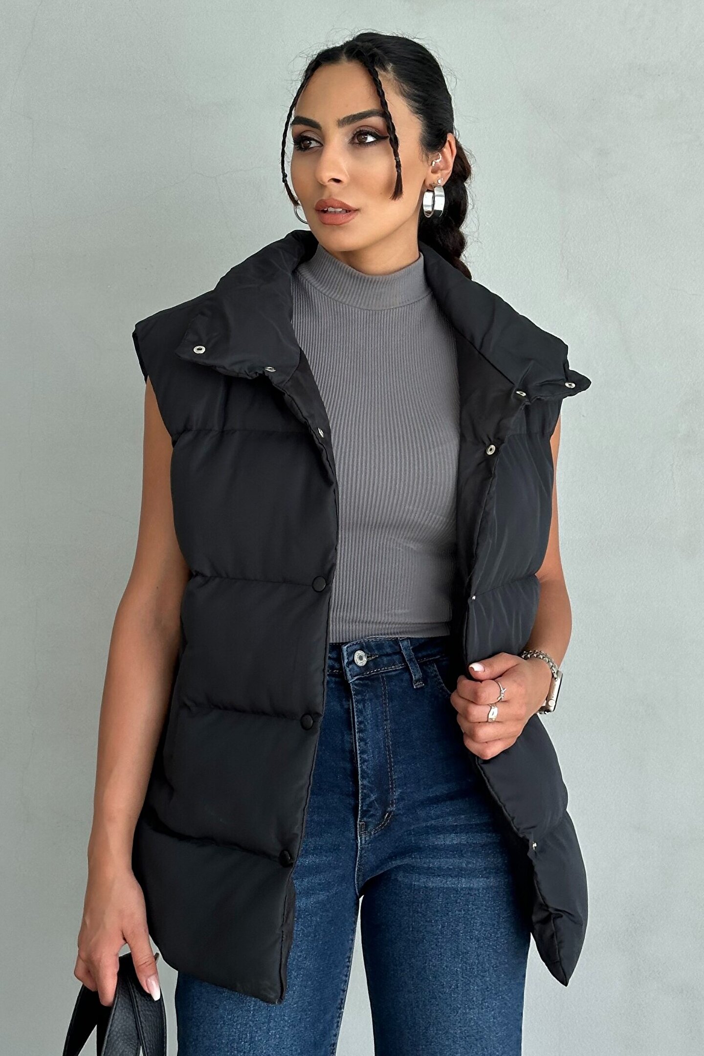 moda armanc Kadın Filotalı Cep Çıtçıtlı Yakalı Uzun Şişme Yelek