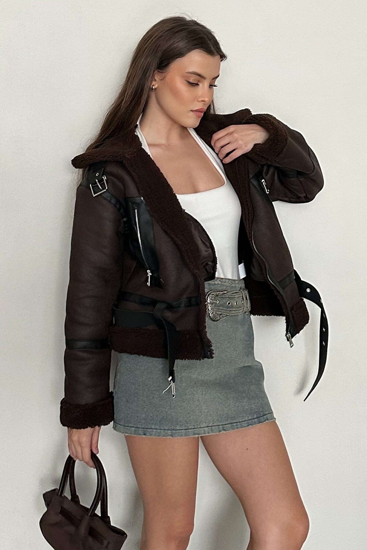 • İçi tamamen kürklü yapısı, kemer ve fermuar detaylarıyla aviator/biker tarzını günlük kombinlerine taşıyor.