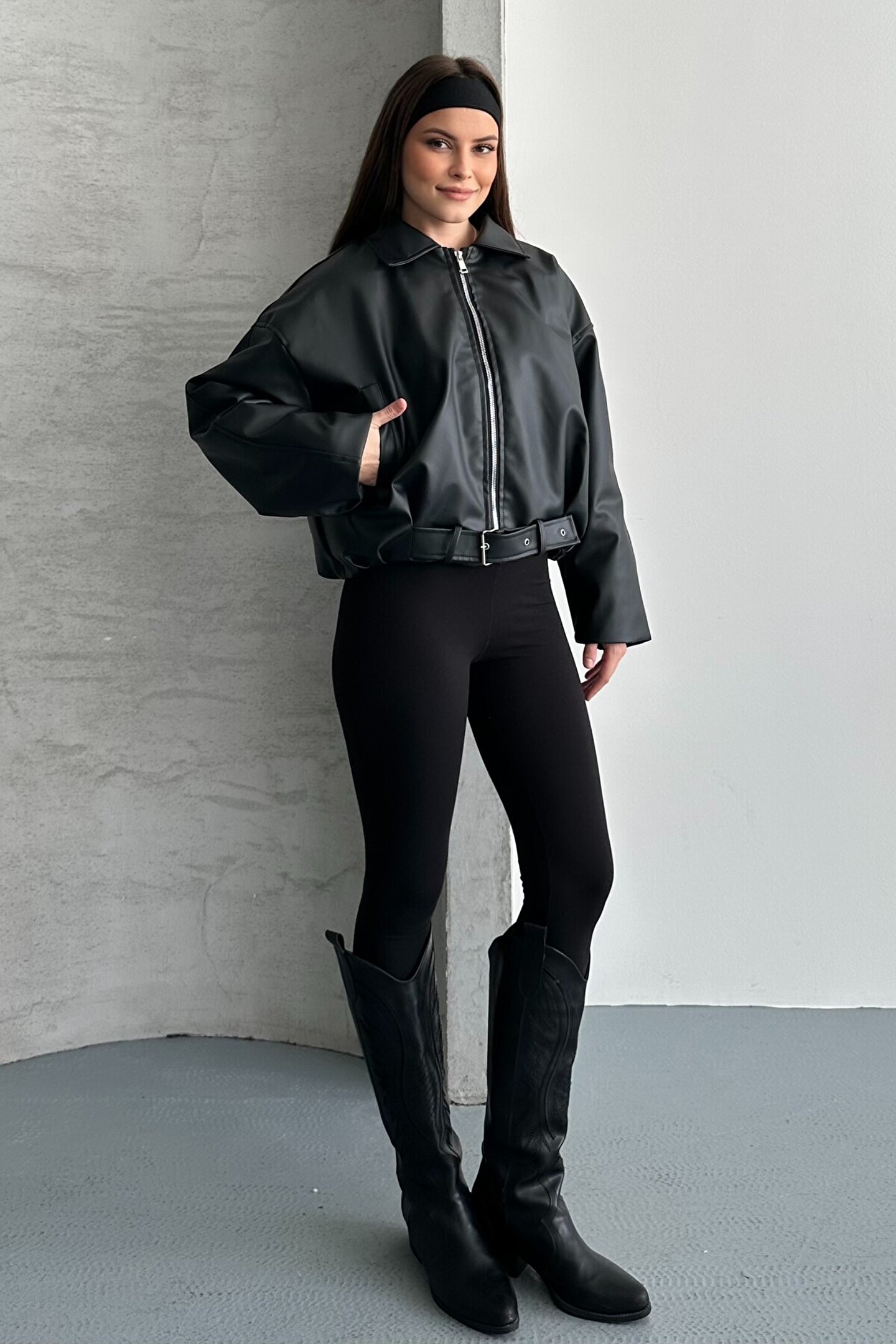 <div id="rich-content-wrapper"> <div> <div> <div> <ul> <li> Sezonun en çok aranan kadın ceket modellerinden biriyle tarzını öne çıkar!<br> </li> <li> Modern kesimi, suni deri dokusu ve içi peluş astarıyla hem <b>şık</b> hem de <b>sıcak tutan</b> bu kadın ceket, günlük kombinlerden şehir stiline kadar her ortamda fark yaratır.<br> </li> <li> <b>Suni deri kadın ceket</b> – premium ve pürüzsüz yüzey<br> </li> <li> <b>İçi peluş astarlı</b> – soğuk havalarda ekstra sıcaklık sağlar<br> </li> <li> <b>Crop kesim &amp; oversize fit</b> – En çok tercih edilen kalıp<br> </li> <li> <b>Kemerli tasarım</b> – bel vurgusu yaparak daha fit bir görünüm sunar<br> </li> <li> <b>Fermuarlı model</b> – pratik kullanım<br> </li> <li> <b>Siyah renk</b> – zamansız, kombinlemesi kolay<br> </li> <li>Günlük kullanım, sokak stili ve casual şıklık için ideal<br></li> <li>Tayt, jean veya yüksek bel pantolonlarla mükemmel uyum<br></li> <li> Spor ayakkabı, bot veya topuklu ile farklı tarzlar yaratılabilir<br> </li> <li>Günlük, ofis sonrası ve hafta sonu kombinleri için ideal<br></li> </ul> <div> <br> </div> </div> <div> <br> </div> </div> </div> </div>