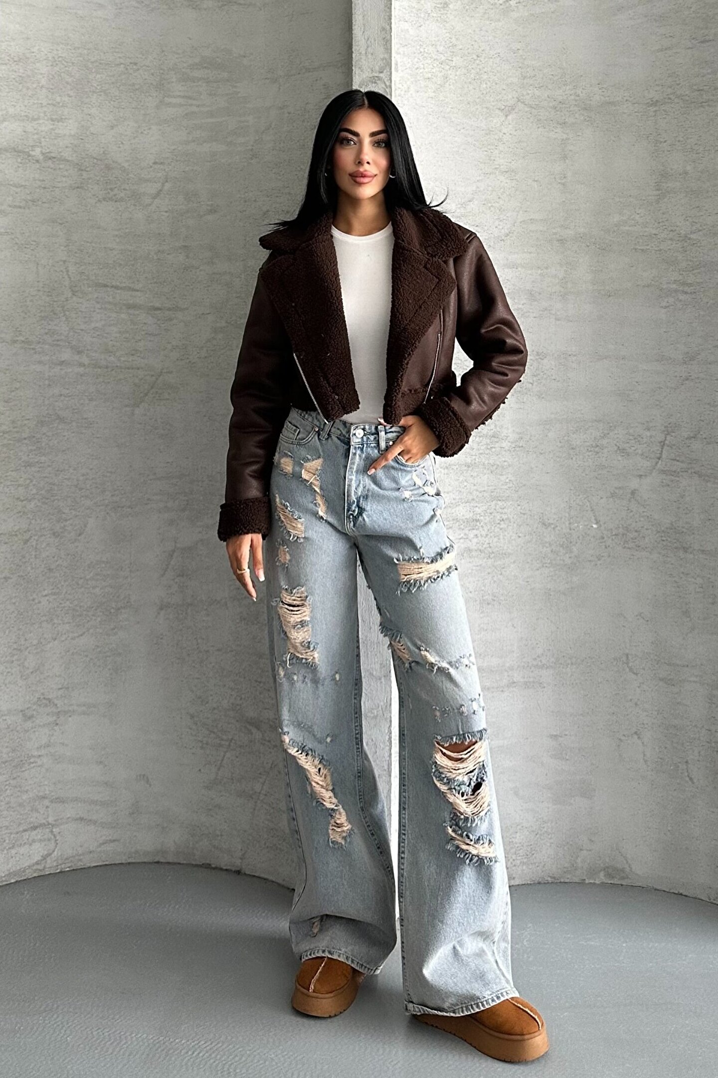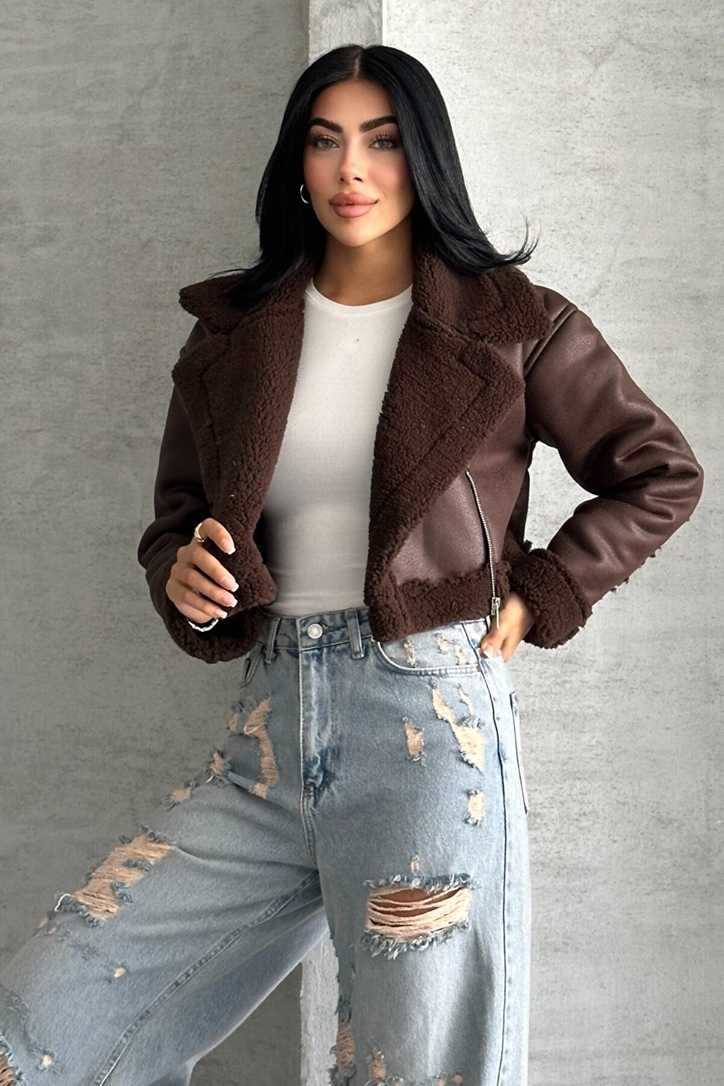 • Bu şık biker ceketi basic bir crop tişört ve uzun çizme ile kombinleyerek etkileyici bir görünüm yakalayabilirsiniz.