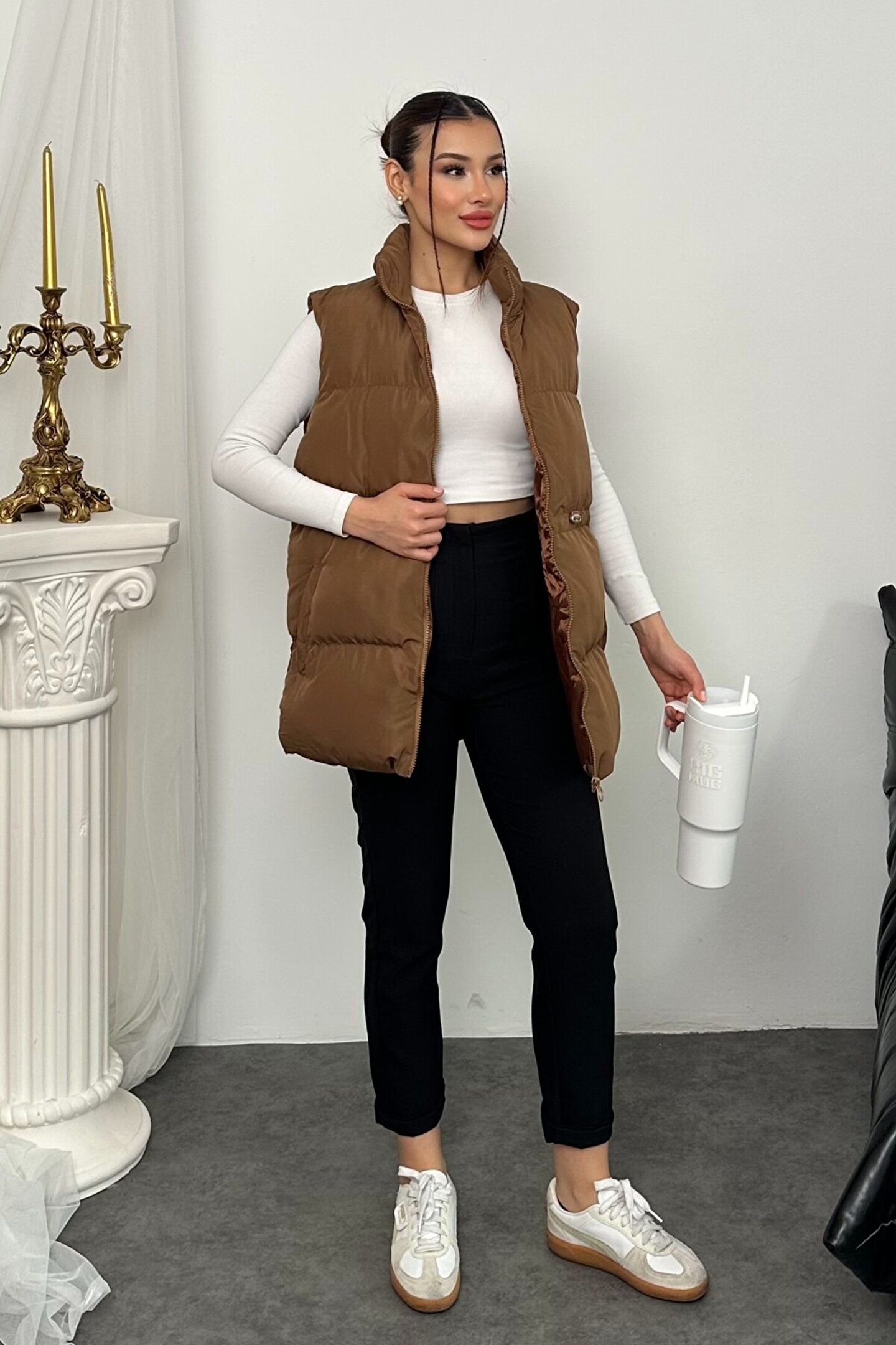 Bu şık ve modern uzun şişme yelek, soğuk havalarda hem sıcak tutan hem de stil sahibi görünmeni sağlayan özel tasarımıyla dolabının vazgeçilmez parçası olmaya aday.