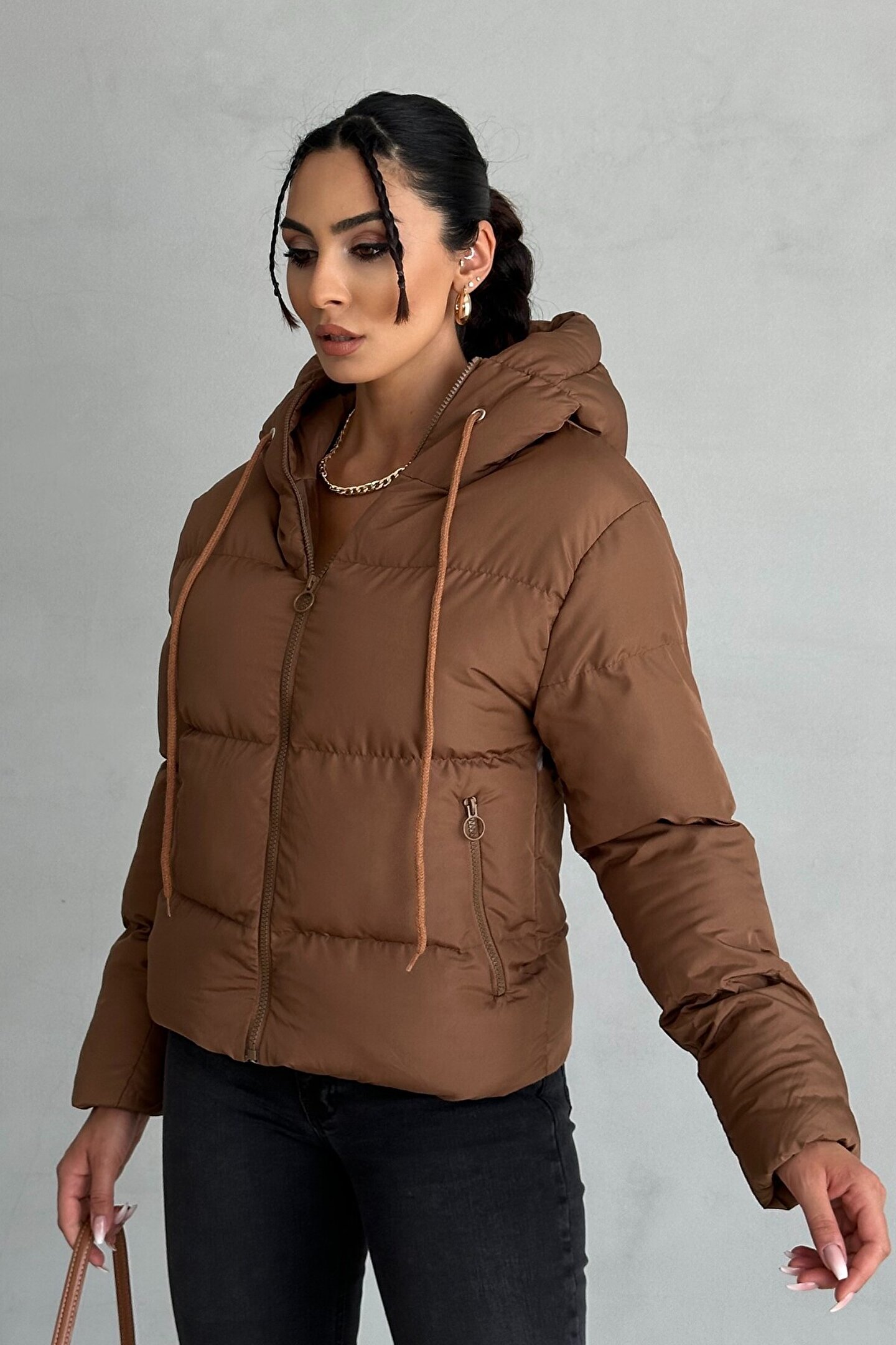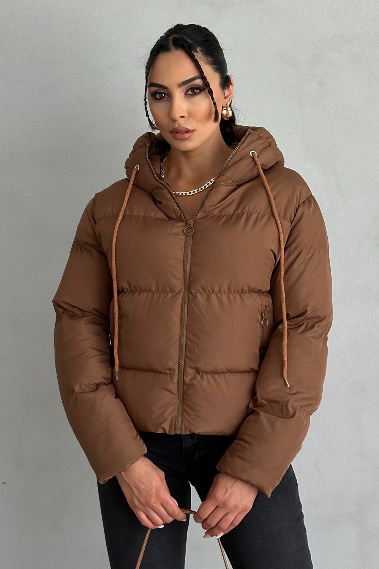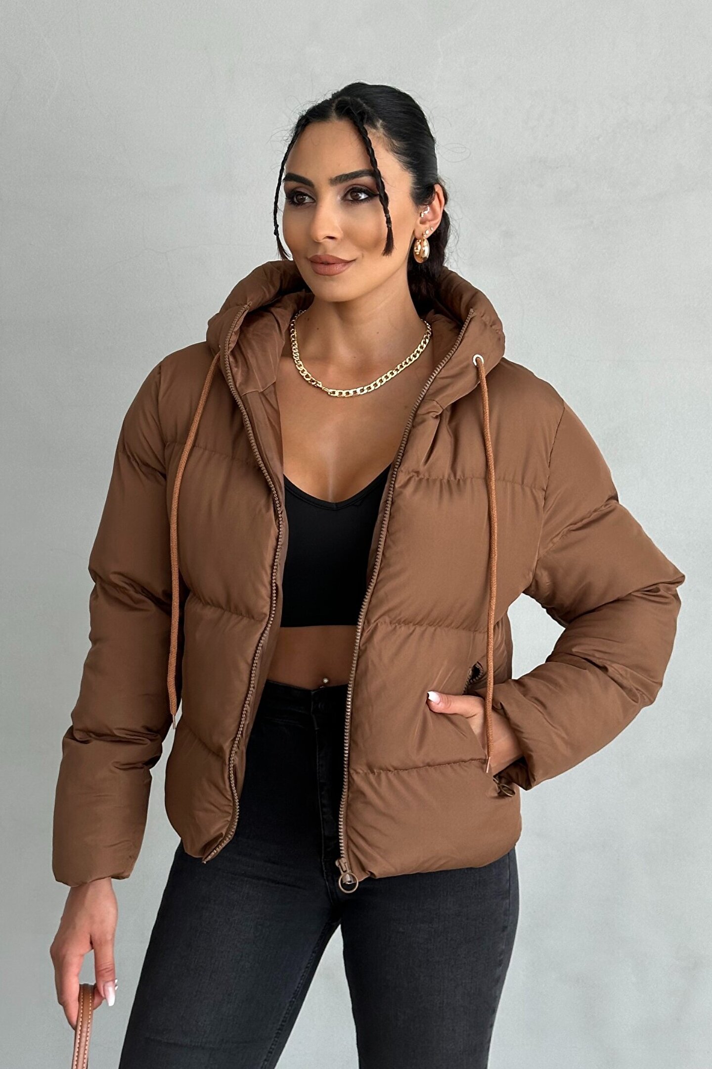moda armanc Kadın Kapüşonlu Şişme Mont - Yakası Bağcıklı