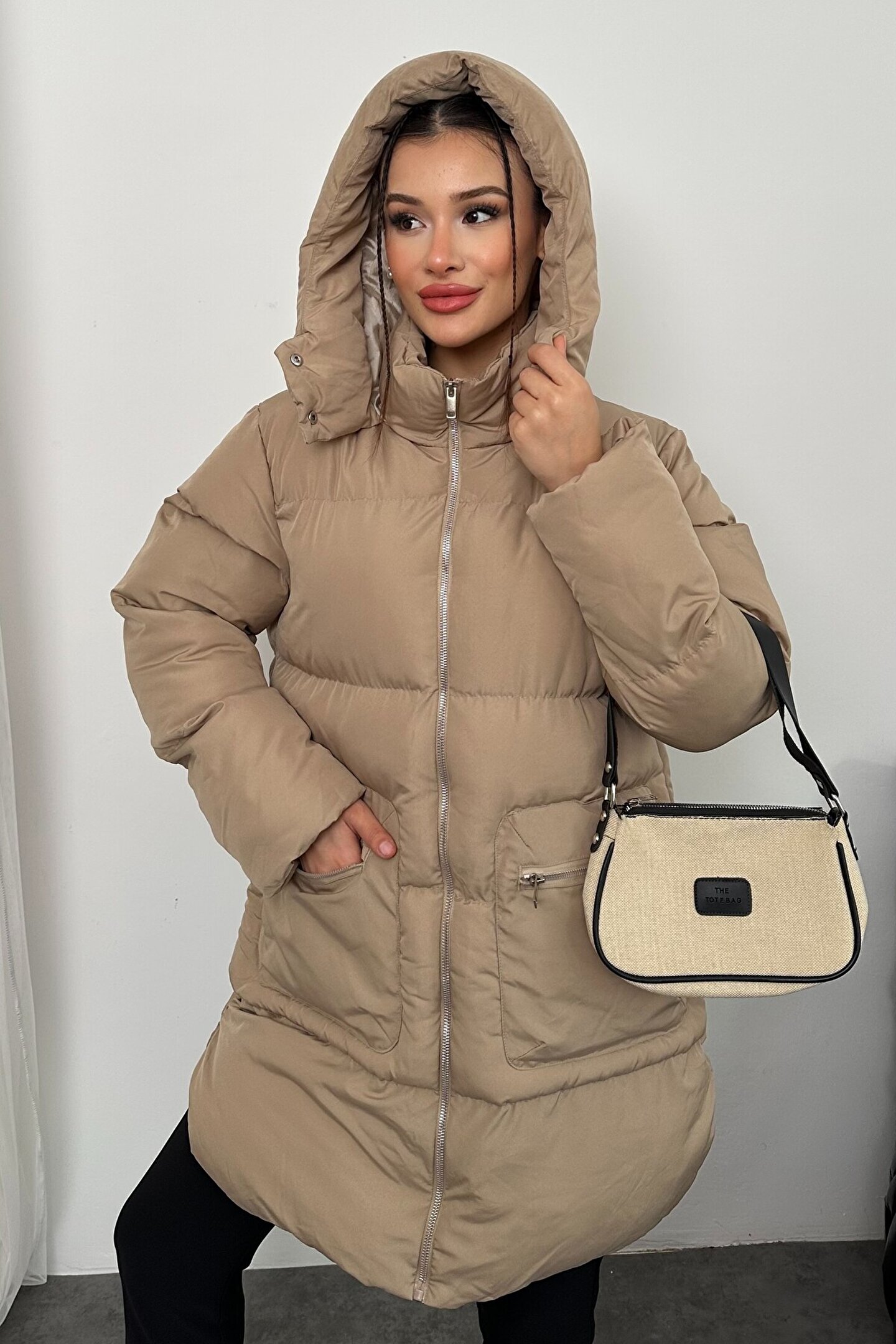 moda armanc Kadın Kapüşonlu Uzun Şişme Mont – Su Geçirmez Oversize Kışlık, Cepli Fermuarlı