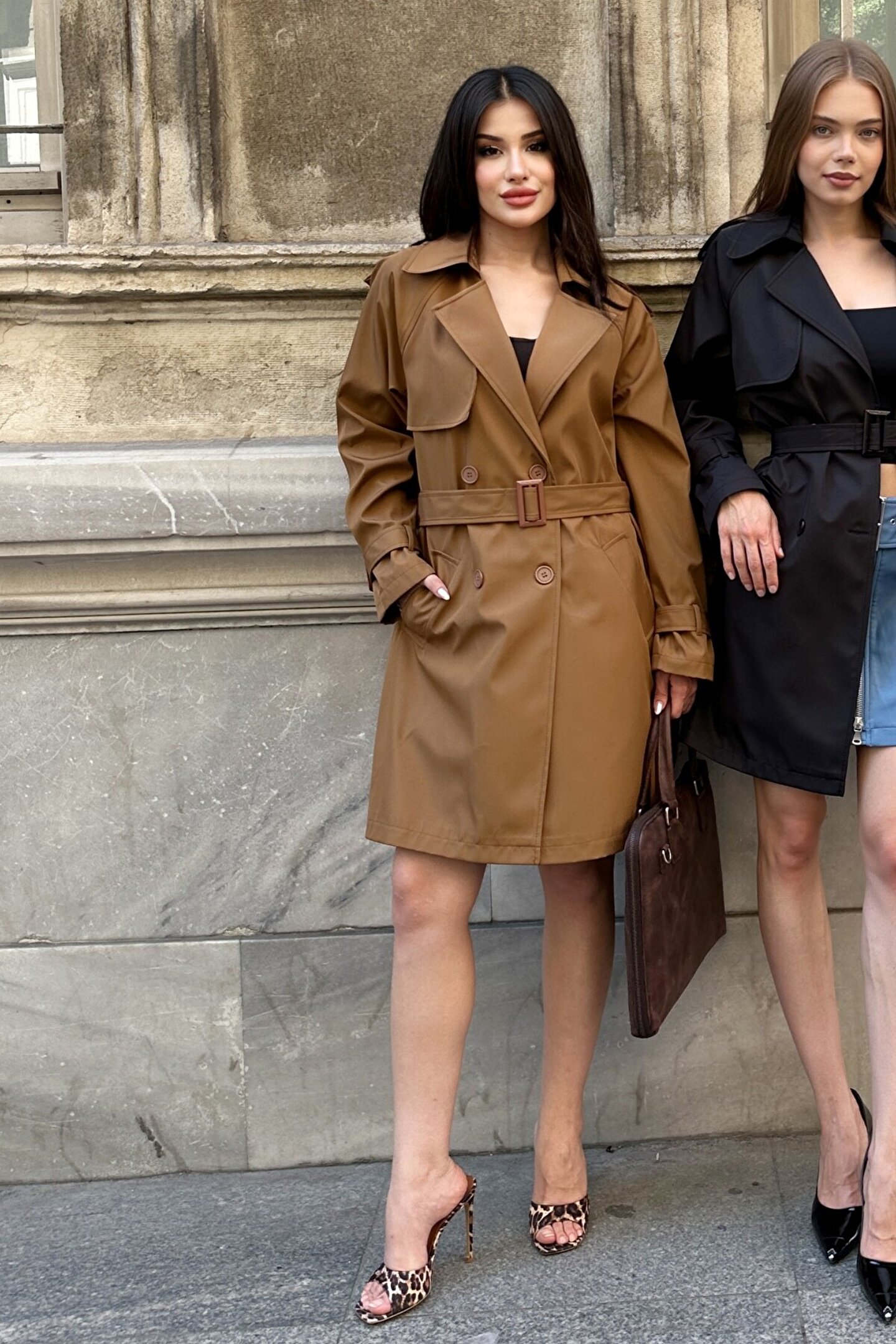 <li>Çift düğmeli klasik trençkot formu <br> </li>