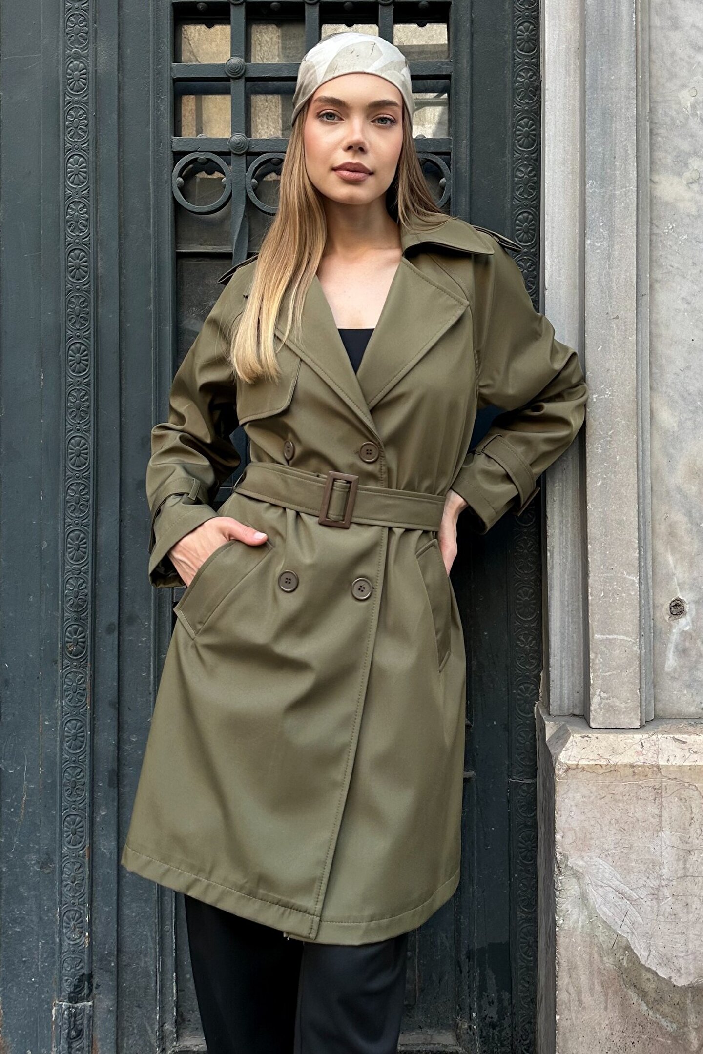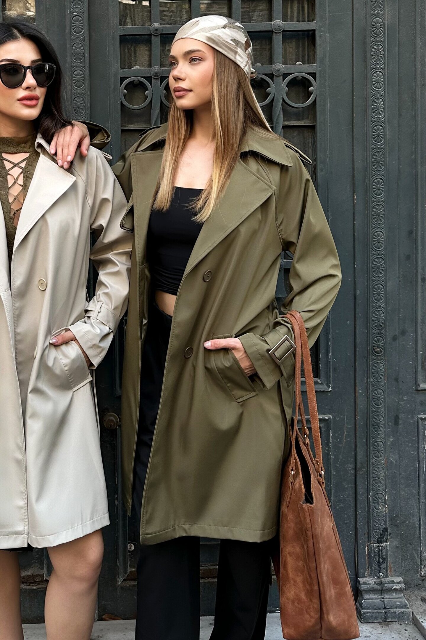 <li>Bu haki kadın trençkot; yalnızca bir dış giyim ürünü değil, aynı zamanda stilinize güç katan bir anahtar parçadır. <br> </li>
