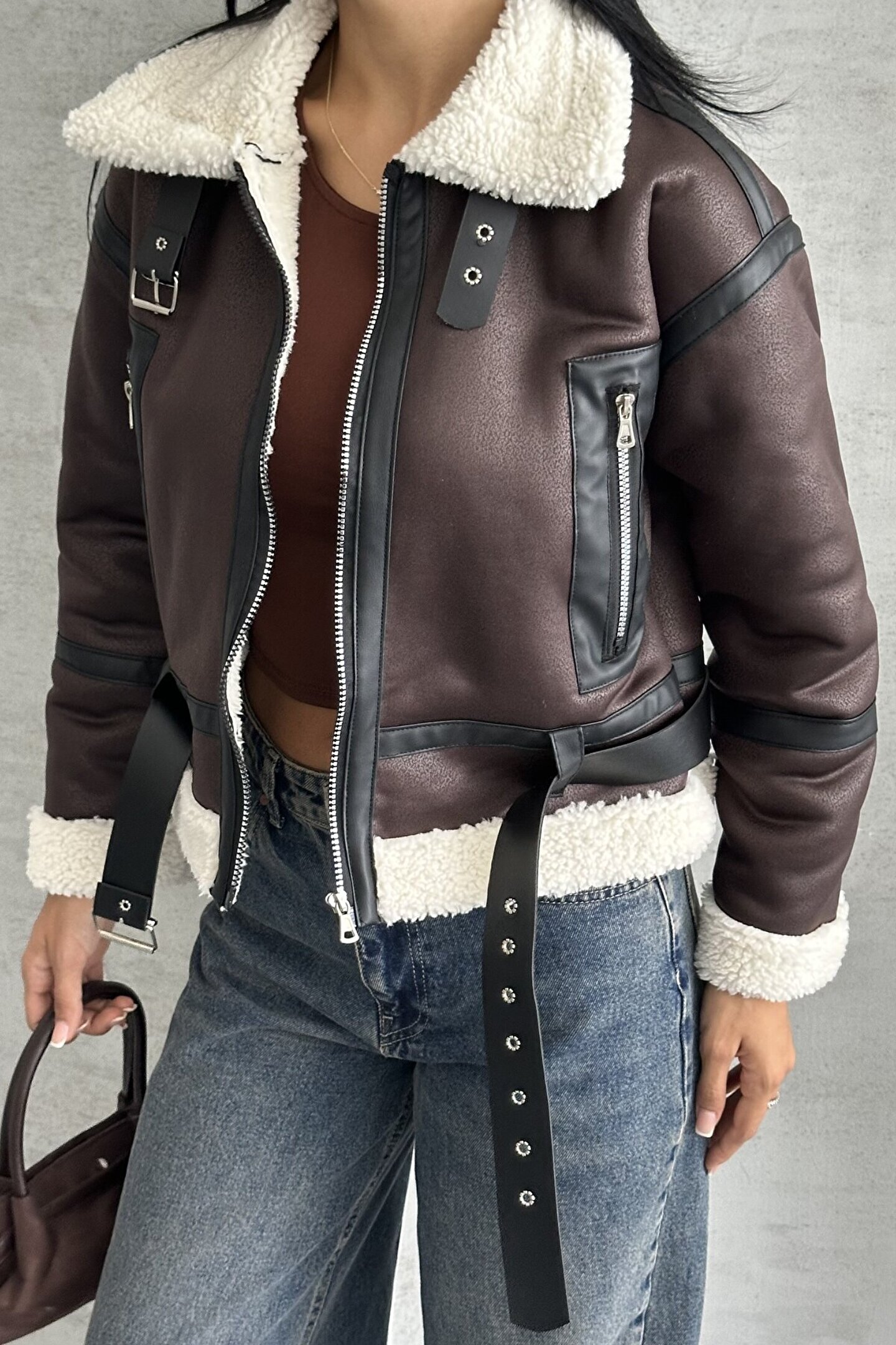 • Tarzınızı yansıtan, hem şık hem de sıcak tutan bir parça arıyorsanız bukadın siyah kemerli kürk detaylı deri monttam size göre!