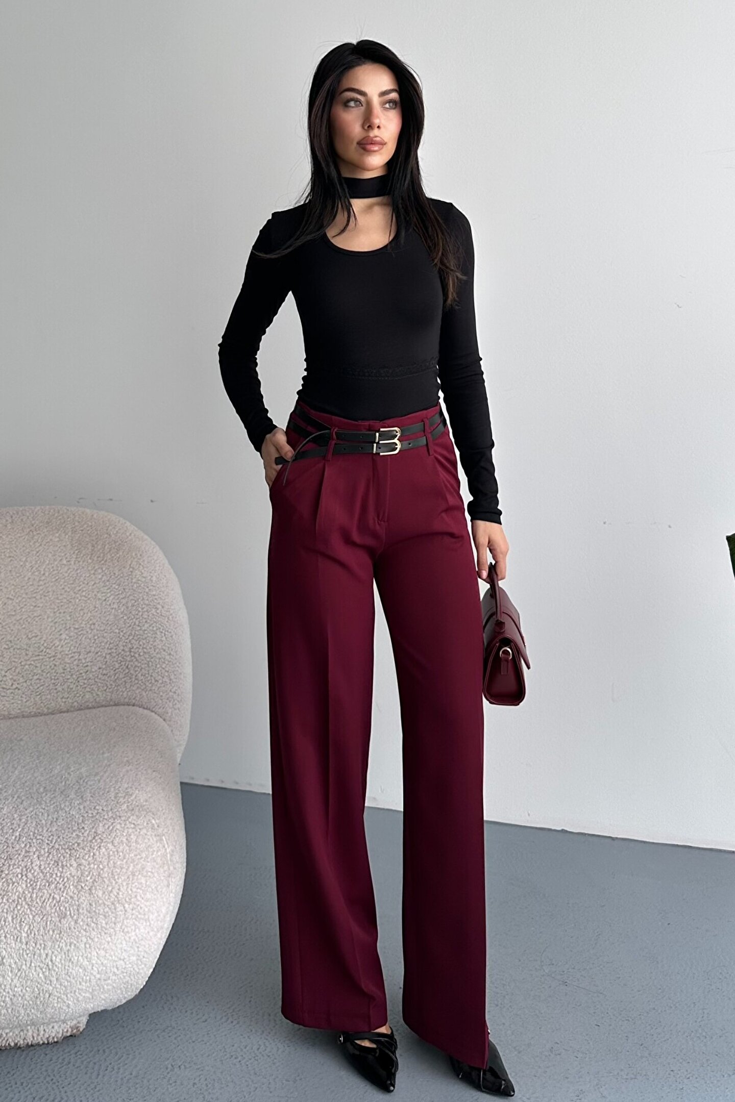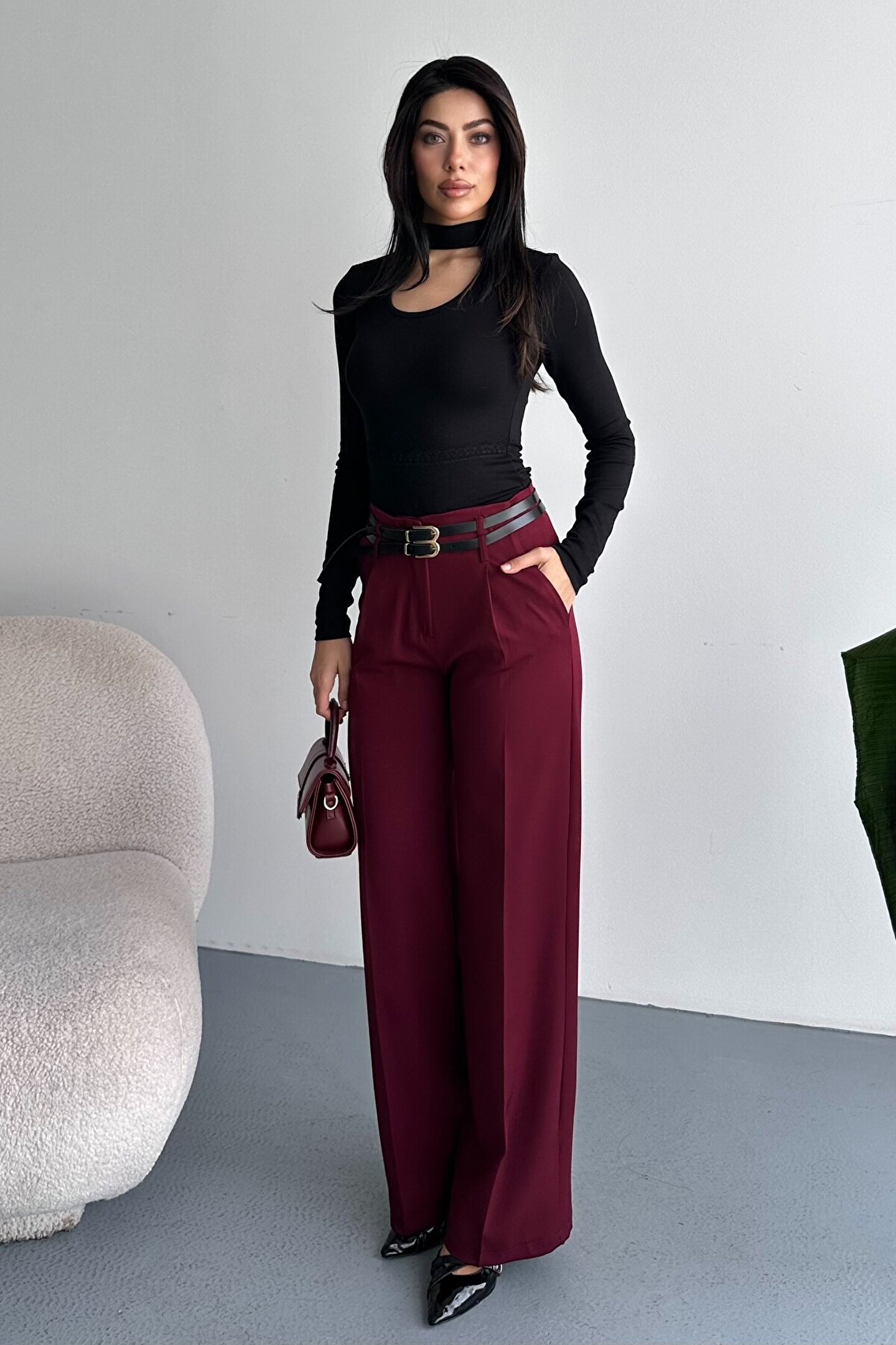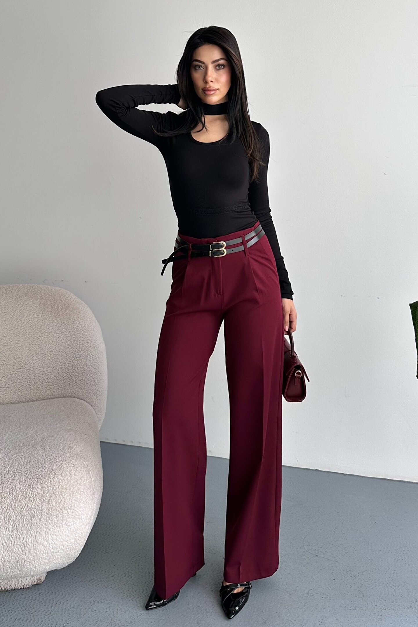 moda armanc Kadın Palazzo Pantolon Kemerli | Yüksek Bel Bol Paça Günlük Çift Kemerli Tasarım