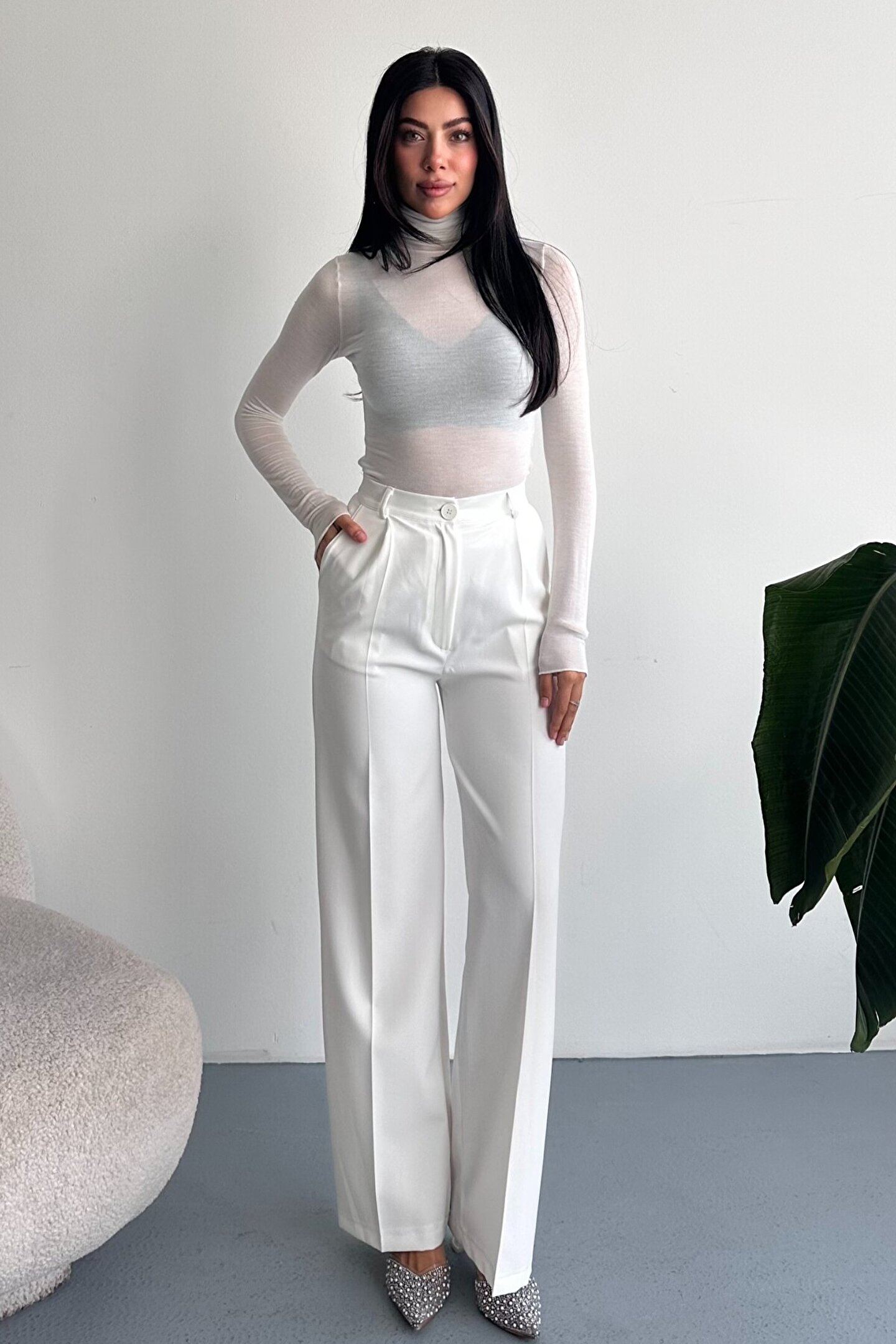 Kadın Palazzo Pantolon; Modern kesimi ve yüksek bel formuyla hem ofis hem günlük kombinlerin vazgeçilmez şık pantolon modeli.; ; Zamansız stil anlayışını modern kesimle buluşturan yüksek bel geniş paça kumaş pantolon, hem günlük kombinlerde hem ofis stilinde şık ve güçlü bir görünüm sunar.; ; Yüksek bel tasarımı vücut formunu dengelerken, akıcı ve düz paça kesimi bacak boyunu daha uzun ve zarif gösterir.; ; Minimal ve sade görünümü sayesinde farklı üst parçalarla kolayca kombinlenebilir.; ; Günlük kullanımda crop, basic tişört ve gömleklerle modern bir stil oluştururken, blazer ve topuklu ayakkabı ile klasik ofis şıklığına uyum sağlar.; ; Akıcı yapısı gün boyu konfor sunarken, güçlü silueti sayesinde stil sahibi ve modern bir duruş kazandırır.; ; Yüksek bel toparlayıcı form ; İspanyol paça modern kesim ; Akıcı ve rahat kumaş yapısı ; Günlük, ofis ve şehir stiline uygun ; Kolay kombinlenebilir zamansız tasarım ; Şık ve dengeli siluet görünümü ; Gardırobun en kurtarıcı parçalarından biri olacak bu model, hem klasik hem modern stil seven kadınlar için tasarlanmıştır.; ;