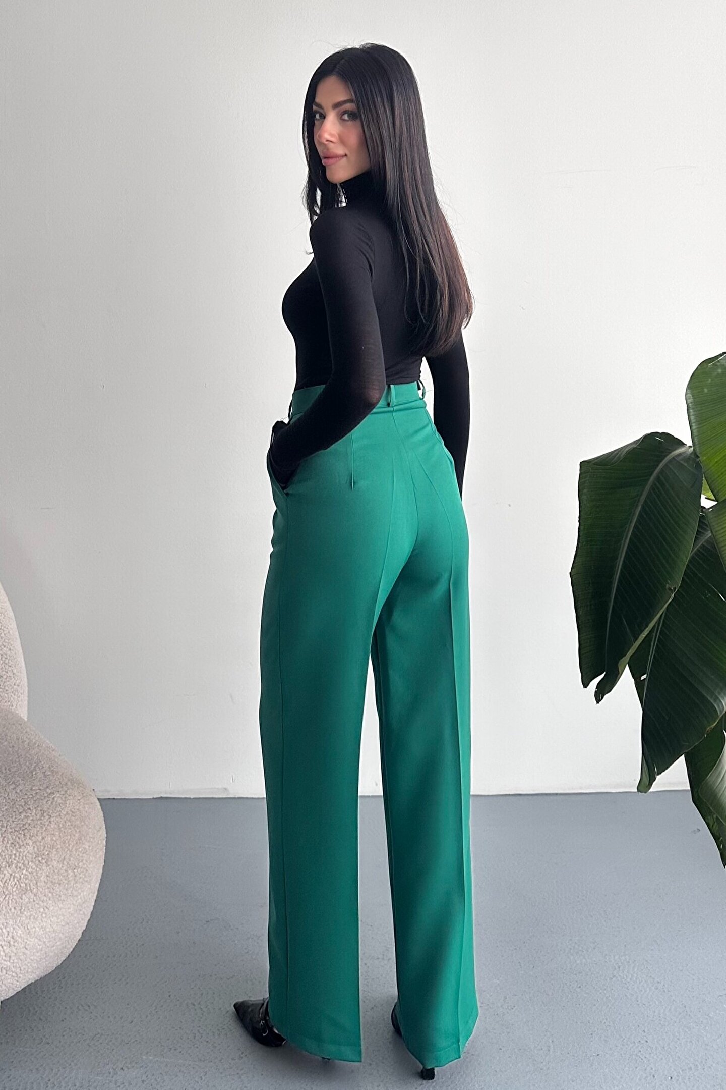 Kadın Palazzo Pantolon; Modern kesimi ve yüksek bel formuyla hem ofis hem günlük kombinlerin vazgeçilmez şık pantolon modeli.; ; Zamansız stil anlayışını modern kesimle buluşturan yüksek bel geniş paça kumaş pantolon, hem günlük kombinlerde hem ofis stilinde şık ve güçlü bir görünüm sunar.; ; Yüksek bel tasarımı vücut formunu dengelerken, akıcı ve düz paça kesimi bacak boyunu daha uzun ve zarif gösterir.; ; Minimal ve sade görünümü sayesinde farklı üst parçalarla kolayca kombinlenebilir.; ; Günlük kullanımda crop, basic tişört ve gömleklerle modern bir stil oluştururken, blazer ve topuklu ayakkabı ile klasik ofis şıklığına uyum sağlar.; ; Akıcı yapısı gün boyu konfor sunarken, güçlü silueti sayesinde stil sahibi ve modern bir duruş kazandırır.; ; Yüksek bel toparlayıcı form ; İspanyol paça modern kesim ; Akıcı ve rahat kumaş yapısı ; Günlük, ofis ve şehir stiline uygun ; Kolay kombinlenebilir zamansız tasarım ; Şık ve dengeli siluet görünümü ; Gardırobun en kurtarıcı parçalarından biri olacak bu model, hem klasik hem modern stil seven kadınlar için tasarlanmıştır.; ;