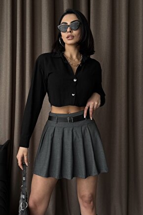 moda armanc Kadın Piliseli Kemerli Mini Etek