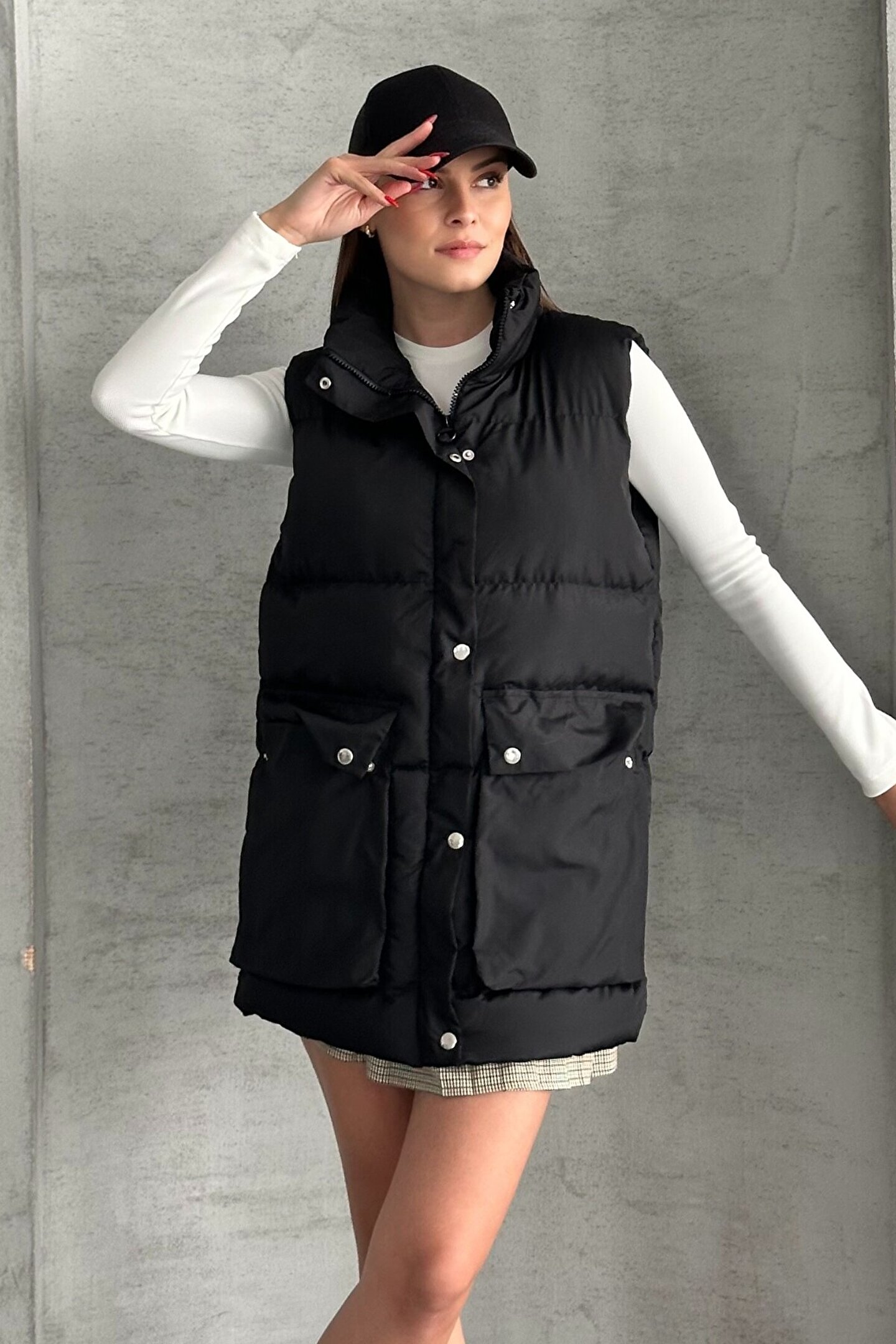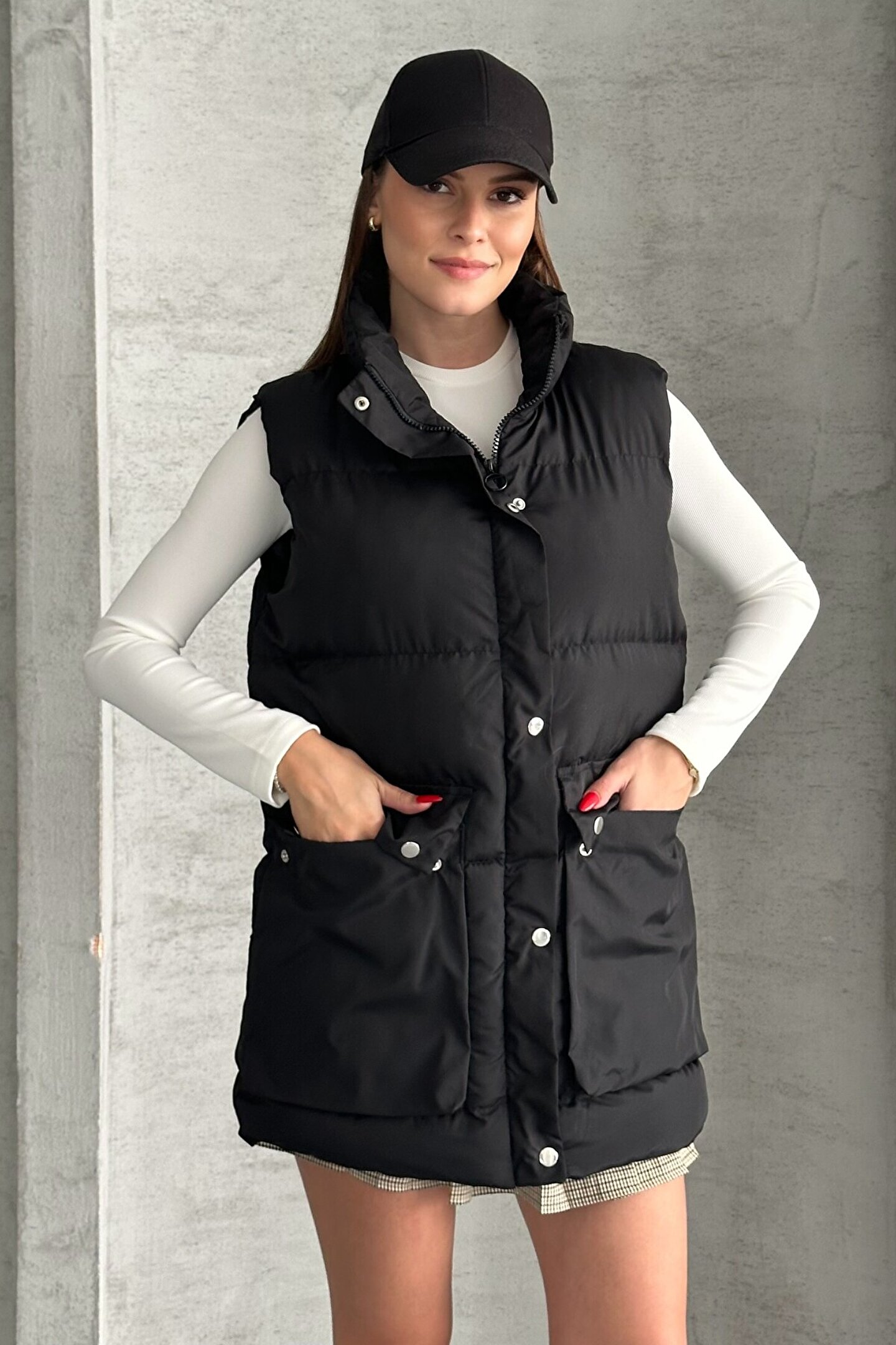 Günlük stilinize hem şıklık hem konfor katacak bu kadın uzun şişme yelek, modern tasarımı ve fonksiyonel detaylarıyla öne çıkıyor.; ; Yüksek yaka detayı ile rüzgâra karşı koruma sağlarken, çift büyük cepli yapısı sayesinde pratik kullanım sunar.; ; Hem spor hem şehir kombinlerine kolayca uyum sağlar.; ; Uzun kesim, modern ve şık duruş ; Ön kısımda fermuar ve düğme kapama ; Fonksiyonel ve geniş cepler ; Yumuşak doku ve sıcak tutan iç dolgu ; Günlük kullanım için idealdir ; Rahat kalıp, hareket özgürlüğü sunar ; Mevsim geçişlerinde ve serin havalarda kurtarıcı parça ; Jean, tayt, etek veya elbiselerle rahatlıkla kombinlenebilir.; Hem spor ayakkabılar hem botlarla şık bir görünüm elde edebilirsiniz.; ; Şehir hayatı, yürüyüş, okul, ofis ve hafta sonu kombinleriniz için mükemmel bir tercih! ;