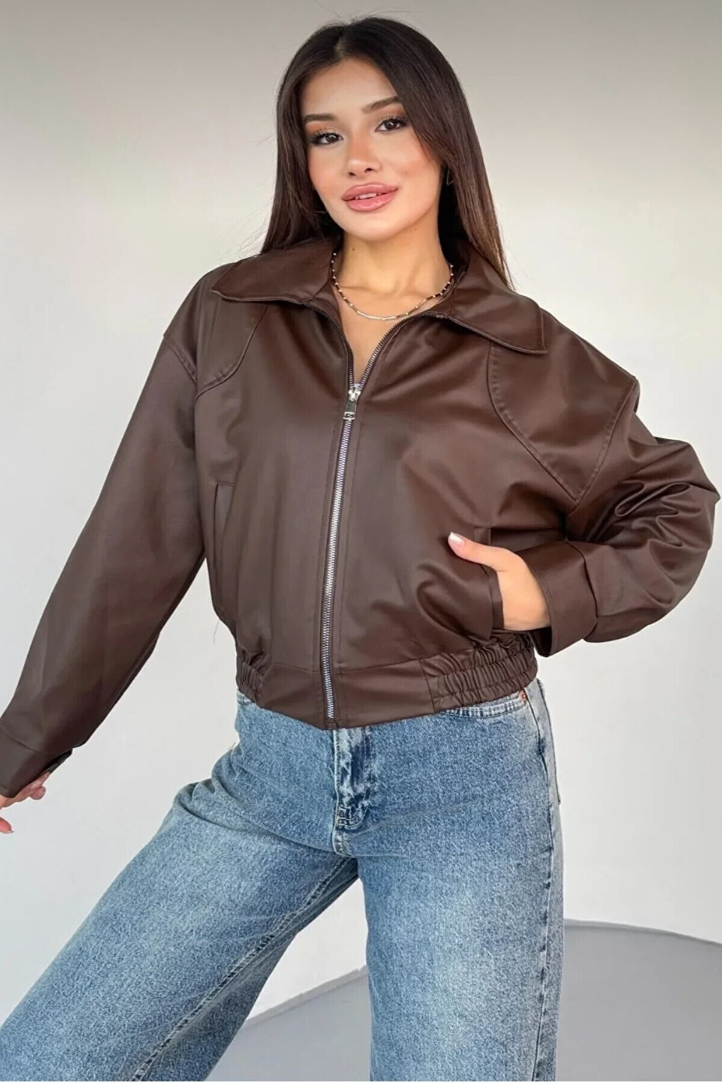 <li>Gardırobunuzun vazgeçilmez parçası olacak bu<b>kahverengi kadın bomber ceket</b>, şıklığı ve konforu bir arada sunar.<br></li>
