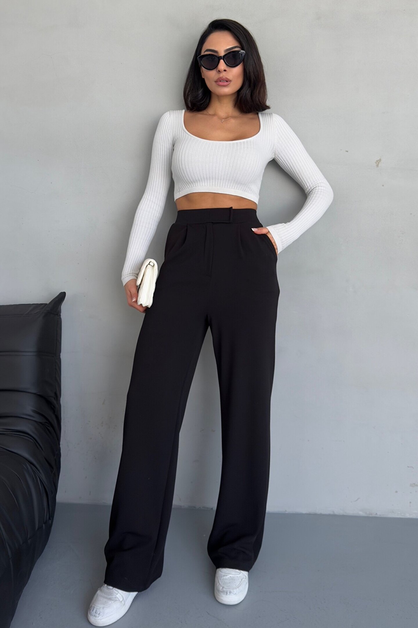 Kadın siyah yüksek bel palazzo pantolon, likralı yapısı ve cırt kapama detayıyla gün boyu rahat kullanım sunar.; ; Bol paça kesimi sayesinde konforlu bir duruş sağlar.; ; Günlük kombinlerde tercih edilen palazzo pantolon modeli, yüksek bel formu ile vücuda uyum sağlar.; ; - Manken Ölçüleri: Boy: 172 Kilo: 58 (Modelin üzerindeki ürün S(36) bedendir.; ) ; - Günlük , Ofis veya Şık Casual kombinlerinizin tamamını tamamlayıcı, kurtarıcı Çok Yönlü Palazzo Pantolon.; (Büyük Beden Seçenekleriyle) ; - YÜKSEK BEL; yüksek ve toparlayıcı bel tasarımı ile belinizi kavrayarak daha ince ve uzun bir silüet oluşturur.; ; - BOL PAÇA; Bol paça kesimi vücut hatlarını dengeleyerek hem klasik hem de modern kombinlere kolay uyum sağlar.; ; - LİKRALI KUMAŞ; Esnek ve boydan boya likralı kumaş, hareket özgürlüğü sunar ve vücudunuza yumuşak şekilde oturur.; ; - NEFES ALABİLİRLİK; Nefes alabilen ithal micro kumaş yapısı, gün boyu ferah bir kullanım sunar - terletmez, yapışmaz.; ; - CIRTLI KAPAMA; Cırtlı kapamalı ayarlanabilir bel, vücut tipinize ve kombininizin yoğunluğuna göre ayarlanabilir konfor sağlar.; ; - GENİŞ BEDEN TABLOSU: Hem Standart hem Büyük Beden seçenekleriyle her vücut tipine hitap eder.; ; - Yüksek Kaliteli Dikiş detaylarıyla uzun ömürlü kullanım sağlar.; ; - Ofis Kombinlerinde crop top ya da blazer ile şık bir görünüm elde edin.; ; - Sneaker spor ayakkabılarınızla tamamlayarak günlük sokak modasında tarzınızı konuşturun.