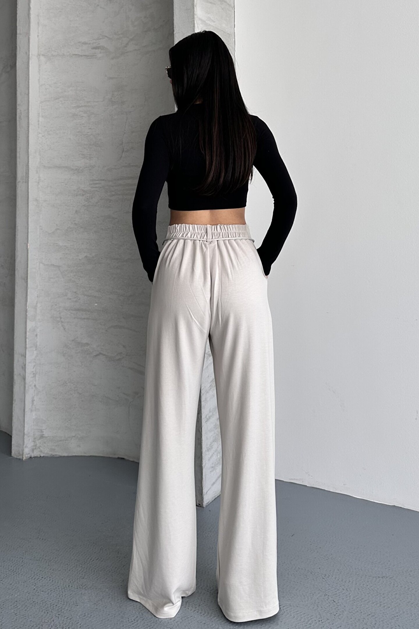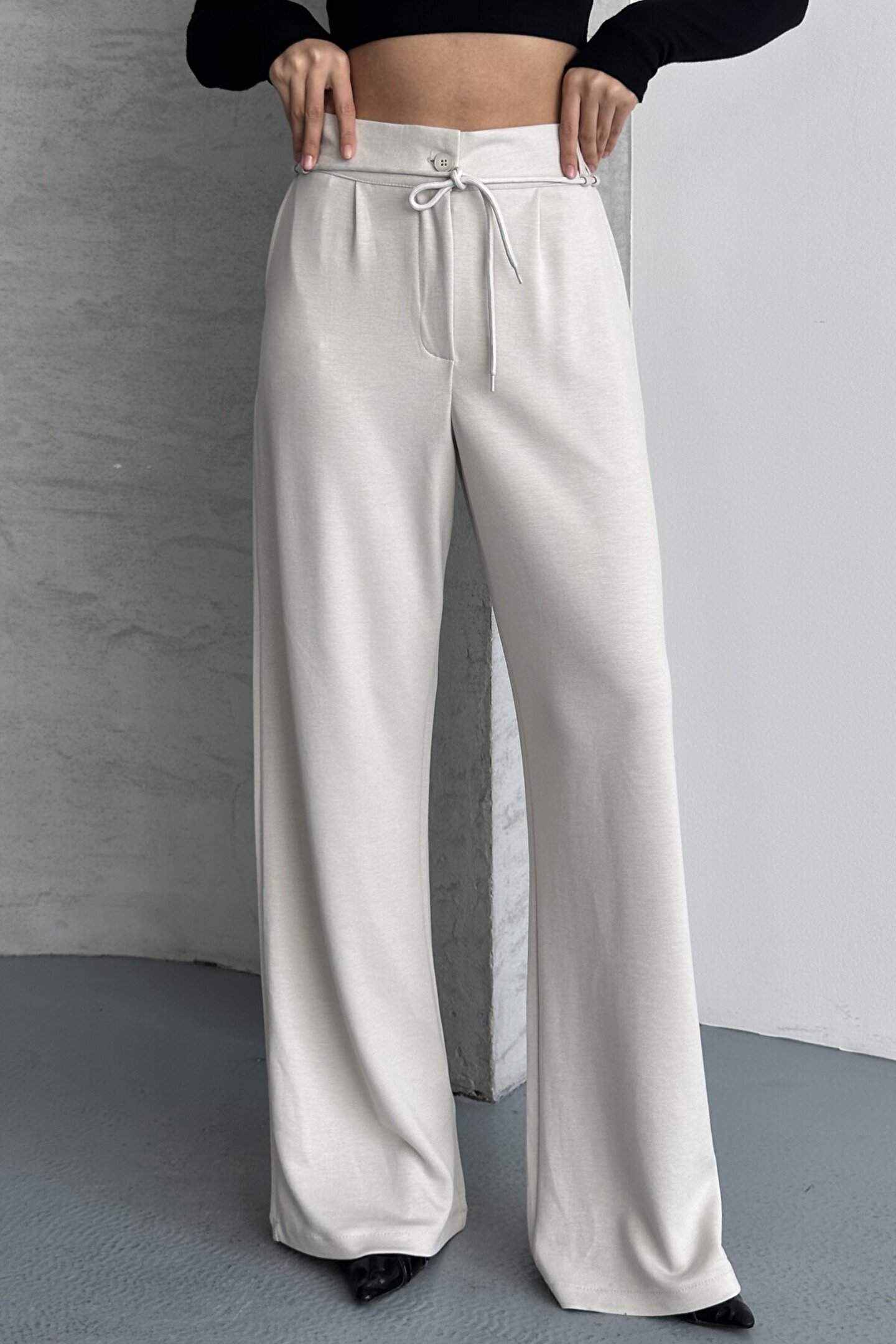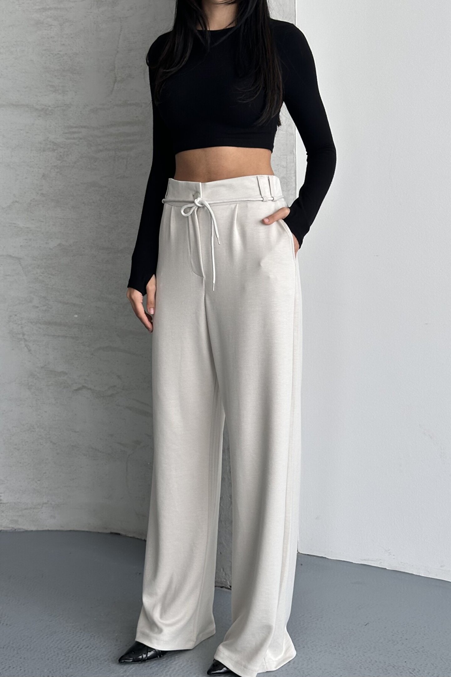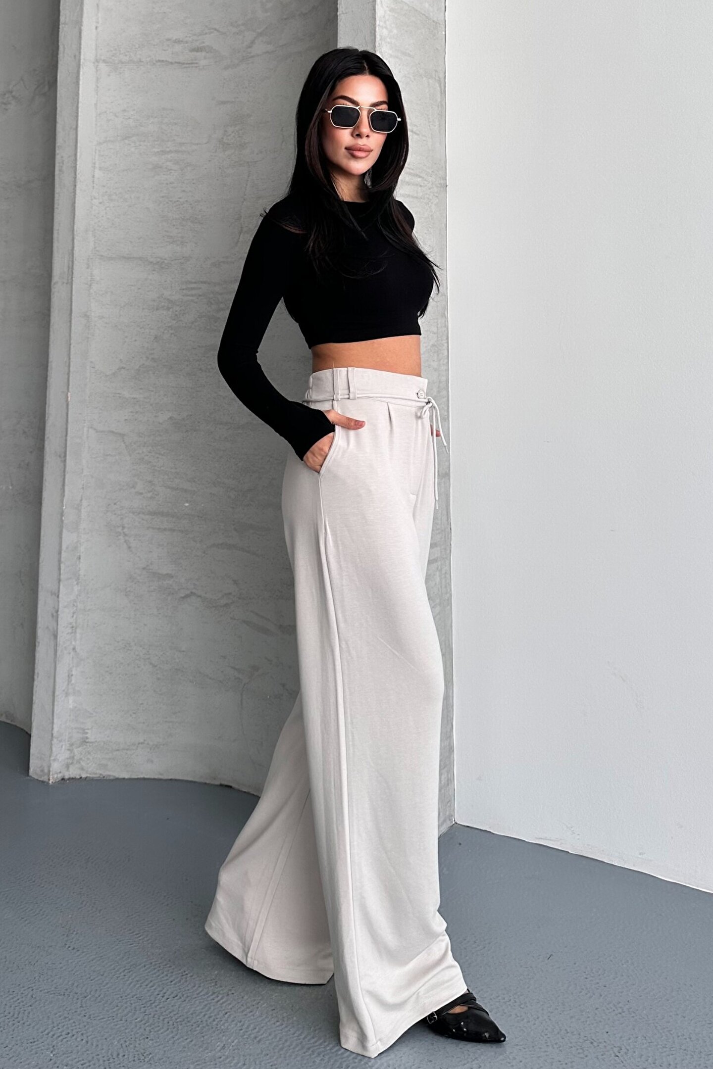 • Modern şehir stilinin vazgeçilmezi olan yüksek bel bağcıklı palazzo pantolon, rahat kesimi ve akıcı duruşu ile gün boyu konfor ve şıklığı bir arada sunar.