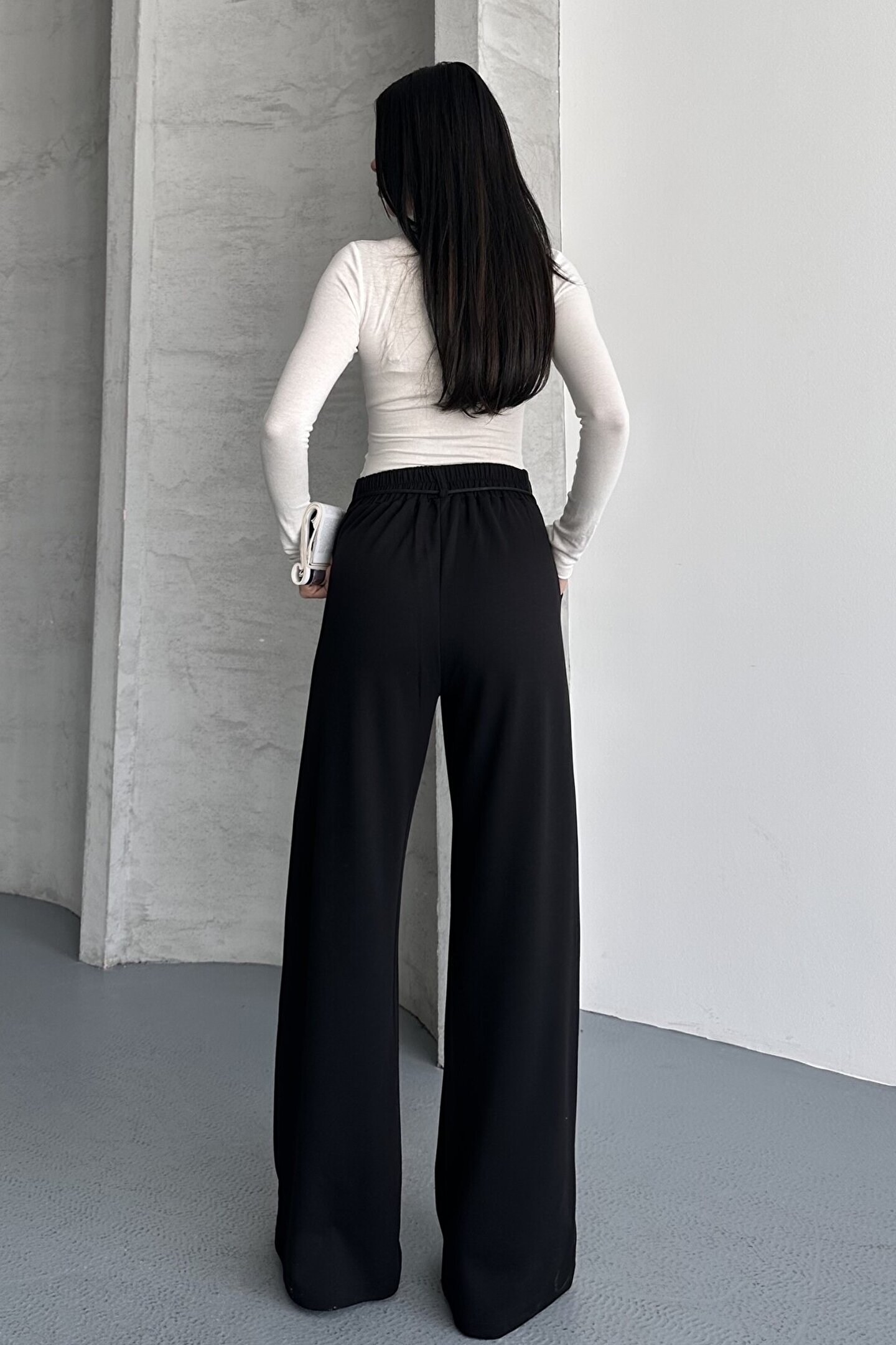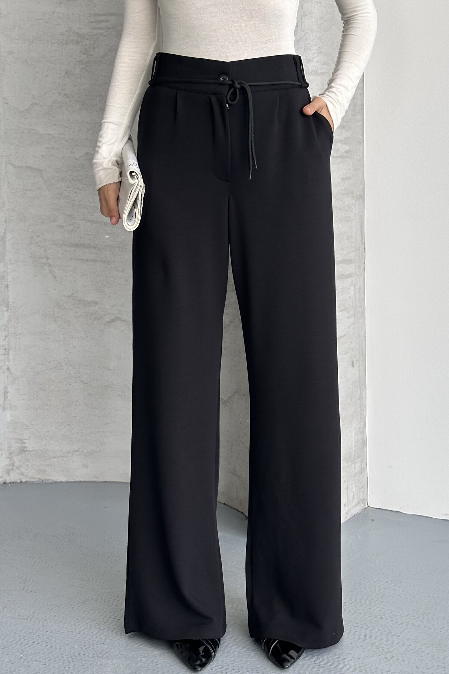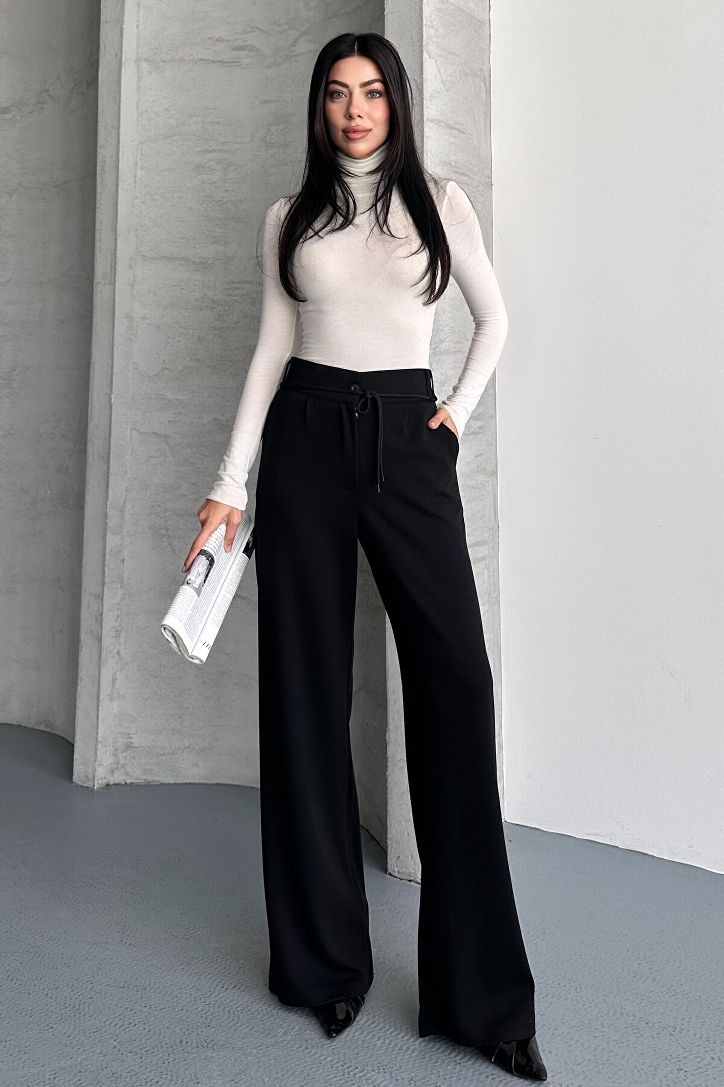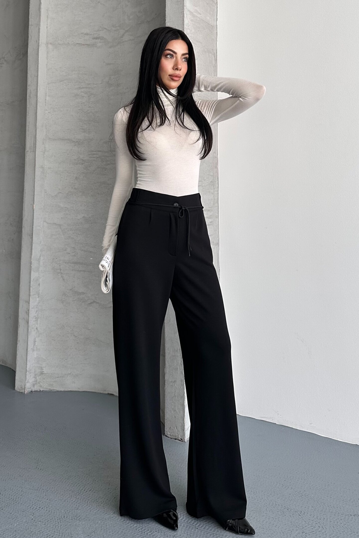 • Modern şehir stilinin vazgeçilmezi olan yüksek bel bağcıklı palazzo pantolon, rahat kesimi ve akıcı duruşu ile gün boyu konfor ve şıklığı bir arada sunar.