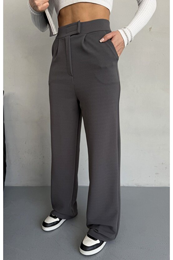 moda armanc Kadın Yüksek Bel Cırt Kapamalı Likralı Antasit Palazzo Pantolon - Günlük Rahat Kalıp