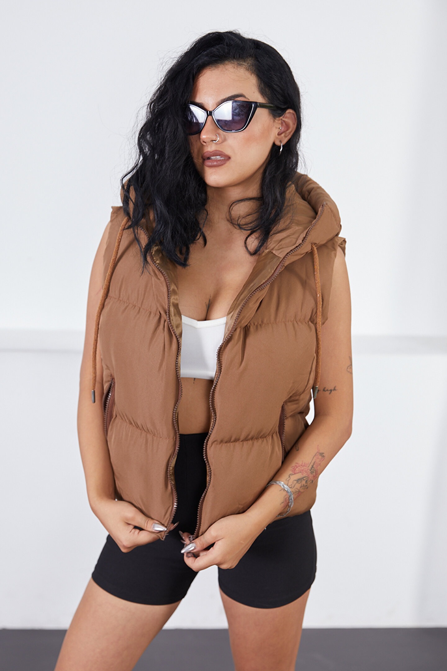moda armanc Kısa Spor Kapüşonlu Şişme Yelek