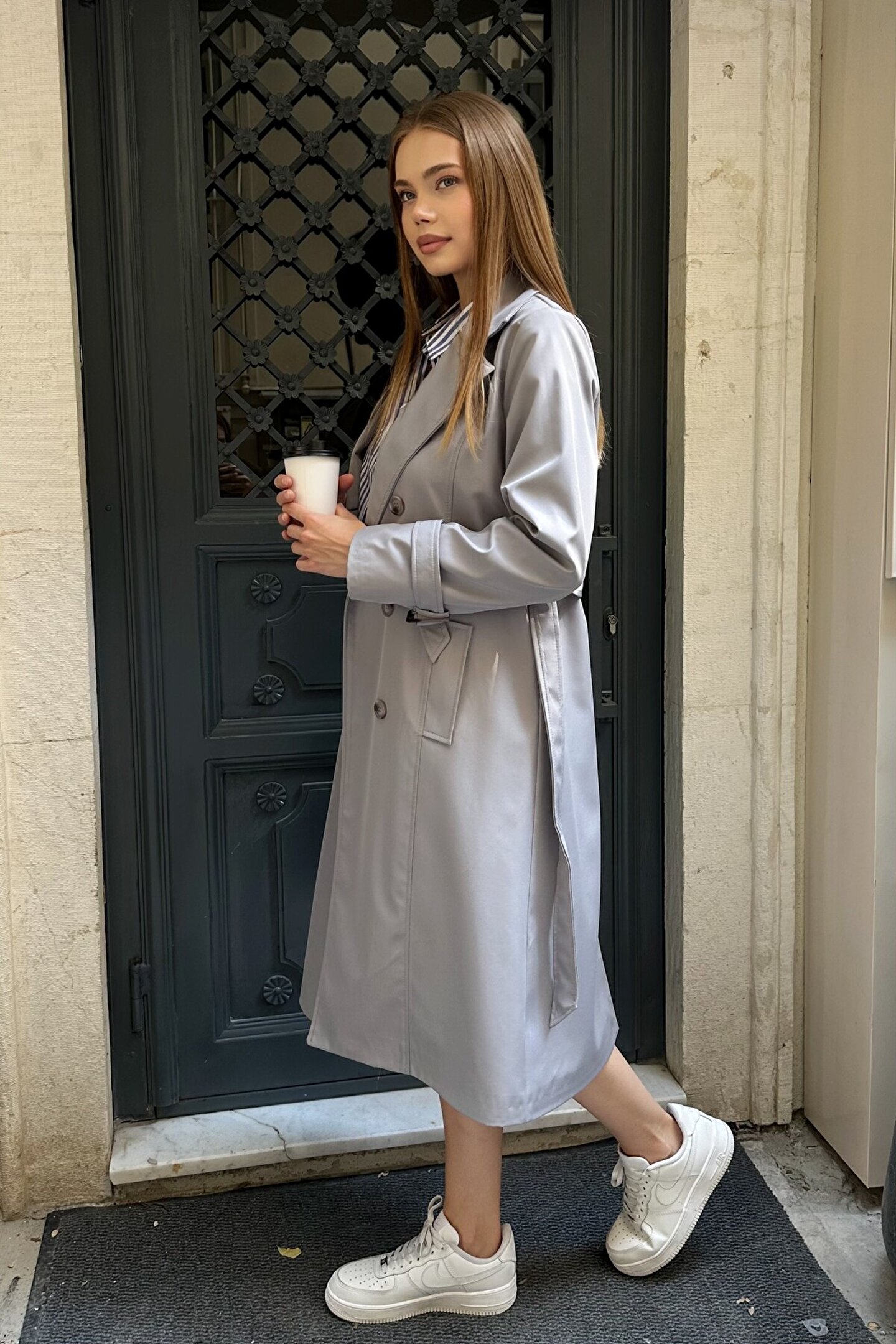 • İlkbahar ve sonbaharın vazgeçilmezi olan bu uzun trençkot, hem günlük kombinlerde hem de ofis stilinde fark yaratmak isteyen kadınlar için tasarlandı.