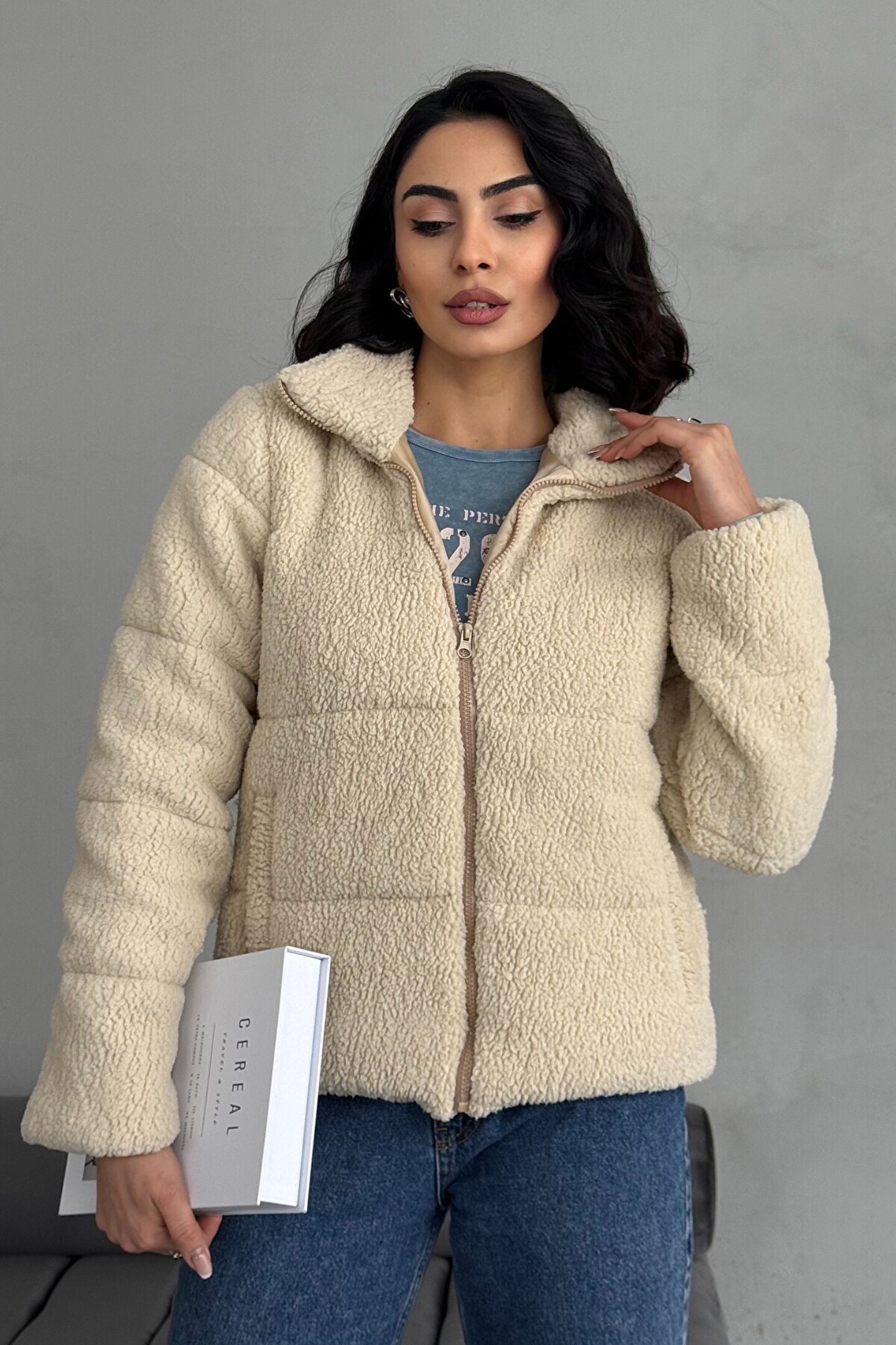 Yumuşak dokusuyla konforlu bir kullanım sunan peluş kumaştan üretilmiştir.; Kolay bakım imkanı sağlayan Type 2 yıkama talimatına uygun şekilde temizlenebilir.; Sade ve şık tasarımıyla günlük kullanıma uygun düz kesim yapıdadır.; Pratik kullanım için fermuarlı kapama özelliği bulunmaktadır.; Eşyalarınızı güvenle taşımanız için çift cepli tasarım sunar.; Şişme silueti ile modern ve dinamik bir görünüm kazandırır.; Uzun kollu yapısı sayesinde soğuk havalarda ekstra koruma sağlar.; Taş rengiyle kolayca kombinleyebileceğiniz zarif bir stil sunar.; Regular boy kesimiyle her vücut tipine uyum sağlayacak şekilde tasarlanmıştır.; Basic koleksiyonunun sadeliğini yansıtan düz desene sahiptir.; %100 polyester materyal bileşeni ile dayanıklılığı arttırılırken aynı zamanda hafiflik hissi verir.; Standart kol tipiyle rahat hareket etme olanağı tanır.; Gündüzden geceye her ortama uygun tasarımıyla gardrobunuzdaki yerini alır.; Çift cepli yapısıyla pratik kullanım imkanı sağlar.; Payet dokuma tipi detaylarıyla göz alıcı bir görünüm kazandırırken aynı zamanda şıklığı ön plana çıkarır.; Astarlı yapısı sayesinde soğuk havalarda ekstra konfor sunarken kalın kumaşı sizi sıcak tutar.; Dik yaka detayı ile hem sıcaklık hem de stil sahibi bir duruş sergiler.;