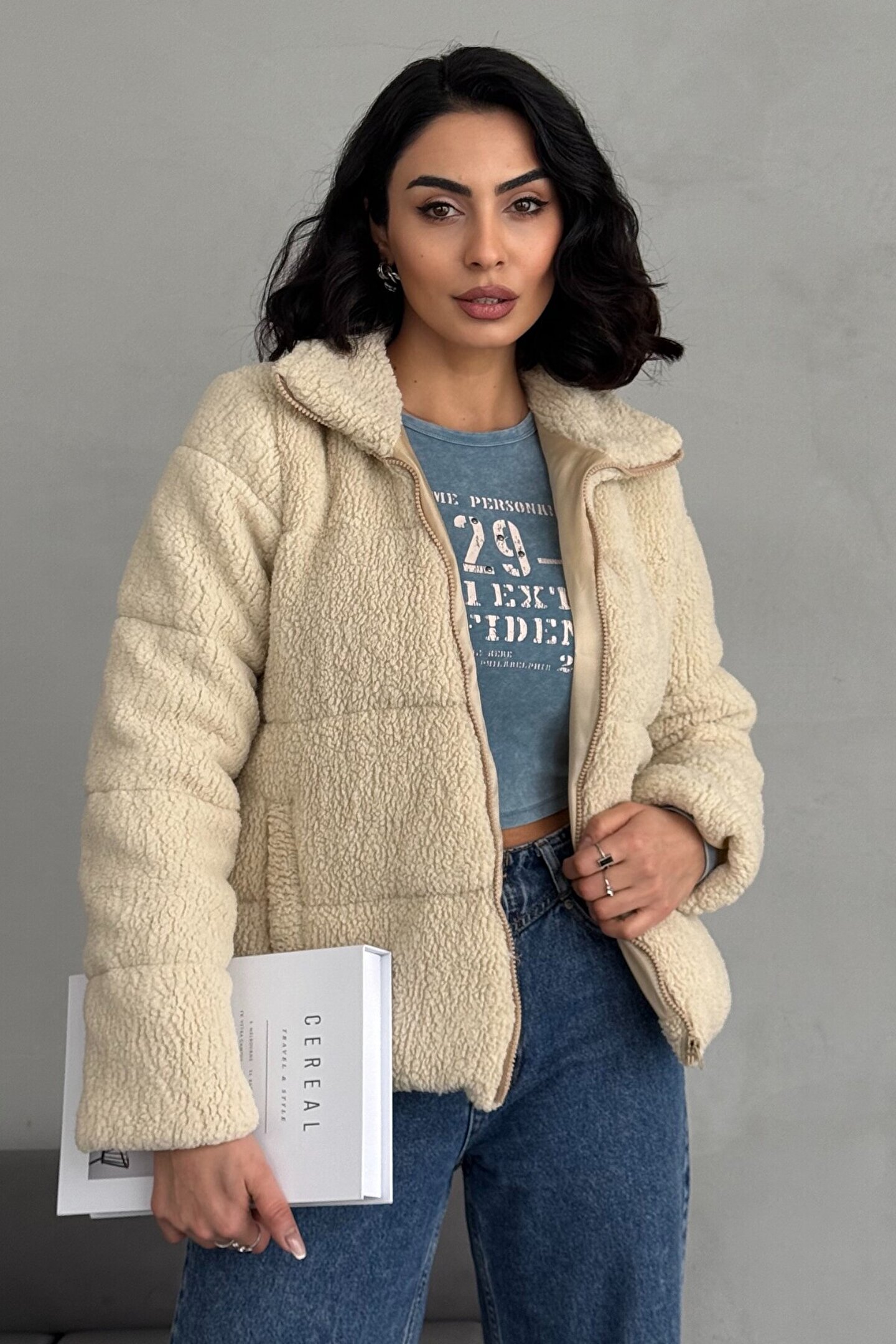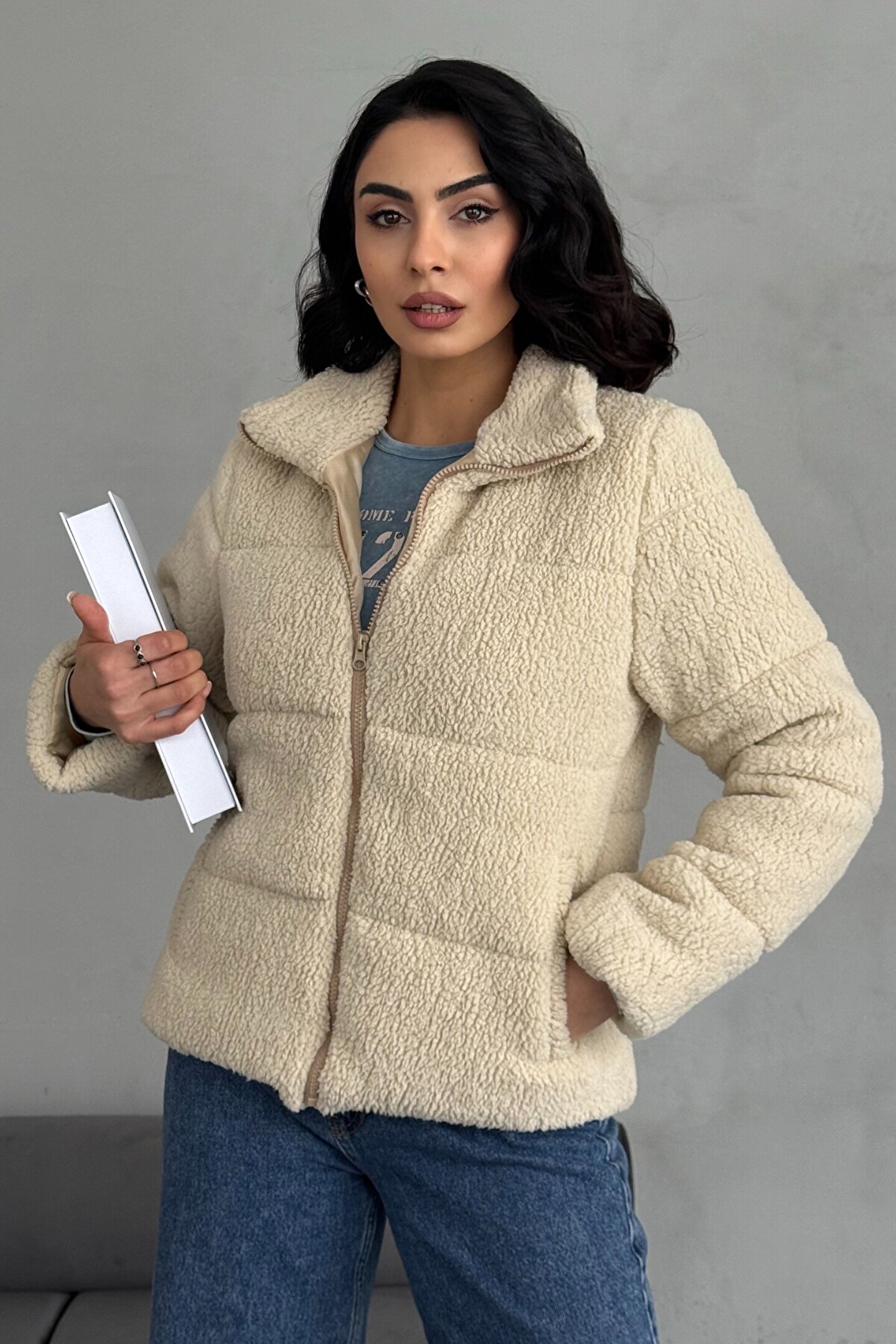 Yumuşak dokusuyla konforlu bir kullanım sunan peluş kumaştan üretilmiştir.; Kolay bakım imkanı sağlayan Type 2 yıkama talimatına uygun şekilde temizlenebilir.; Sade ve şık tasarımıyla günlük kullanıma uygun düz kesim yapıdadır.; Pratik kullanım için fermuarlı kapama özelliği bulunmaktadır.; Eşyalarınızı güvenle taşımanız için çift cepli tasarım sunar.; Şişme silueti ile modern ve dinamik bir görünüm kazandırır.; Uzun kollu yapısı sayesinde soğuk havalarda ekstra koruma sağlar.; Taş rengiyle kolayca kombinleyebileceğiniz zarif bir stil sunar.; Regular boy kesimiyle her vücut tipine uyum sağlayacak şekilde tasarlanmıştır.; Basic koleksiyonunun sadeliğini yansıtan düz desene sahiptir.; %100 polyester materyal bileşeni ile dayanıklılığı arttırılırken aynı zamanda hafiflik hissi verir.; Standart kol tipiyle rahat hareket etme olanağı tanır.; Gündüzden geceye her ortama uygun tasarımıyla gardrobunuzdaki yerini alır.; Çift cepli yapısıyla pratik kullanım imkanı sağlar.; Payet dokuma tipi detaylarıyla göz alıcı bir görünüm kazandırırken aynı zamanda şıklığı ön plana çıkarır.; Astarlı yapısı sayesinde soğuk havalarda ekstra konfor sunarken kalın kumaşı sizi sıcak tutar.; Dik yaka detayı ile hem sıcaklık hem de stil sahibi bir duruş sergiler.;