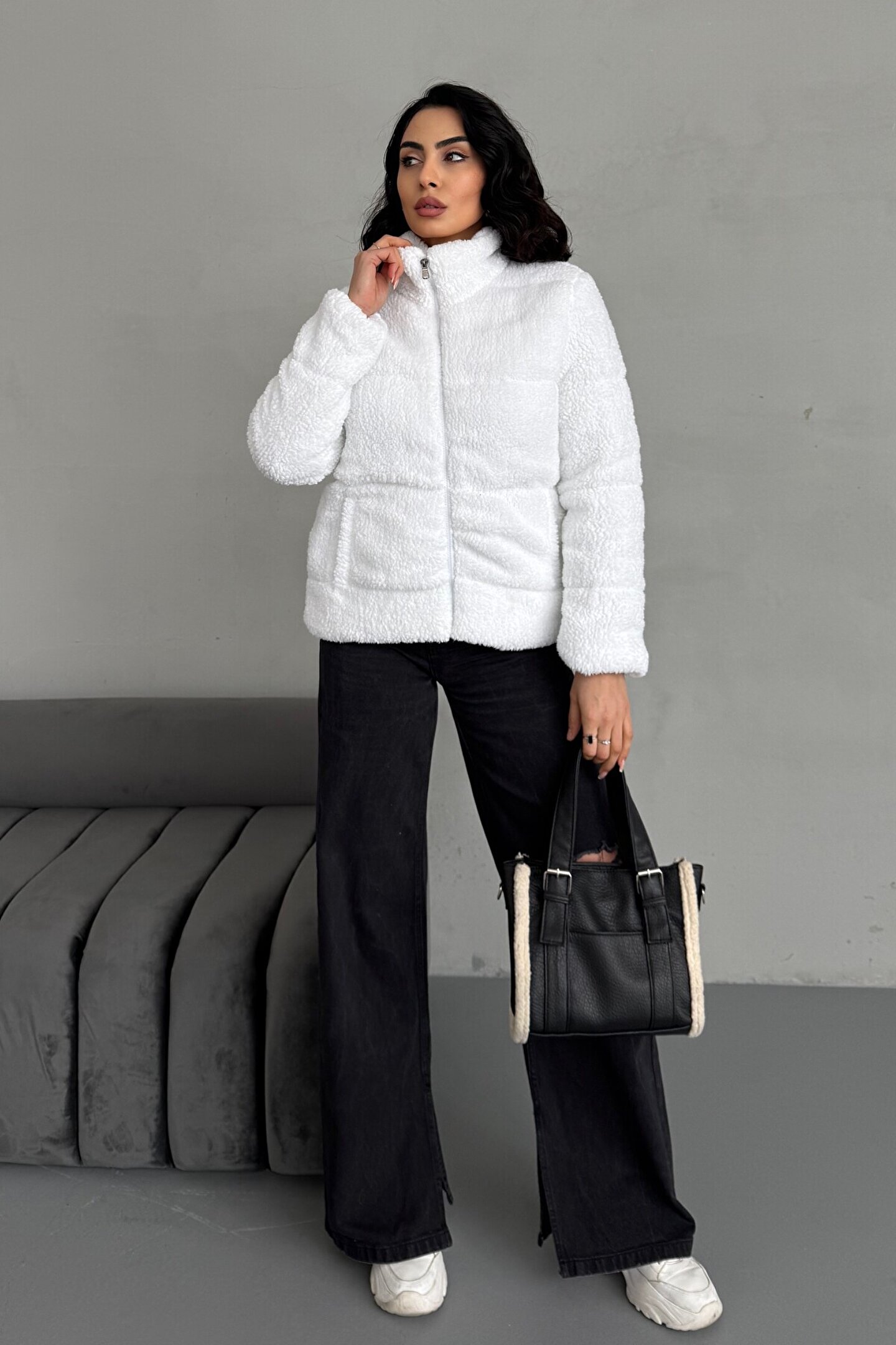 moda armanc Peluş kabartma teddy şişme mont ekru beyaz