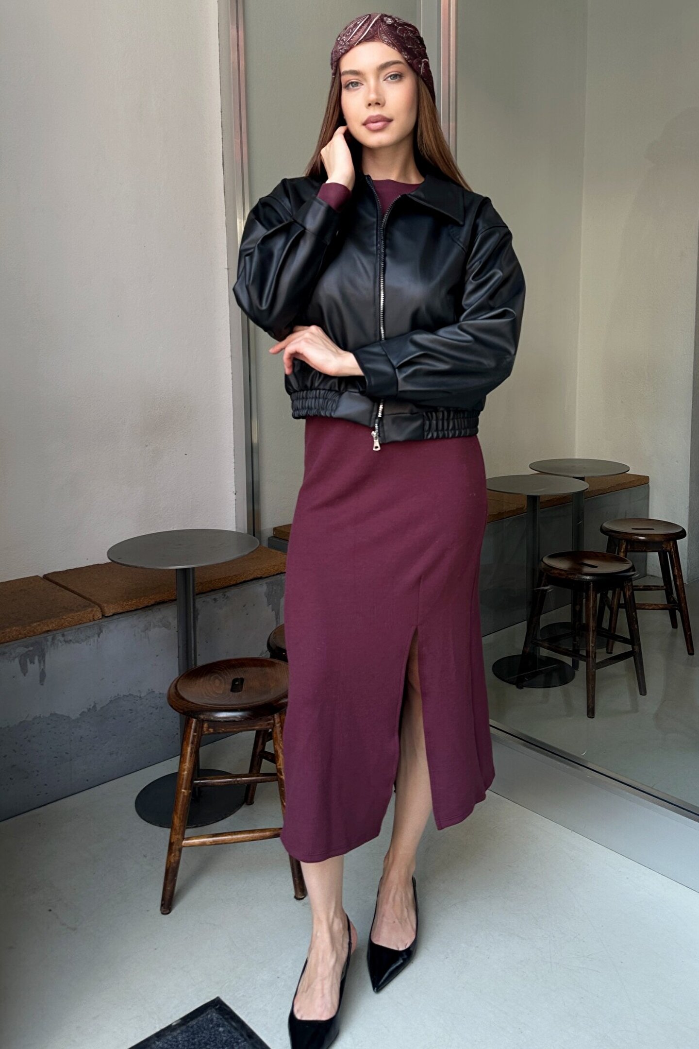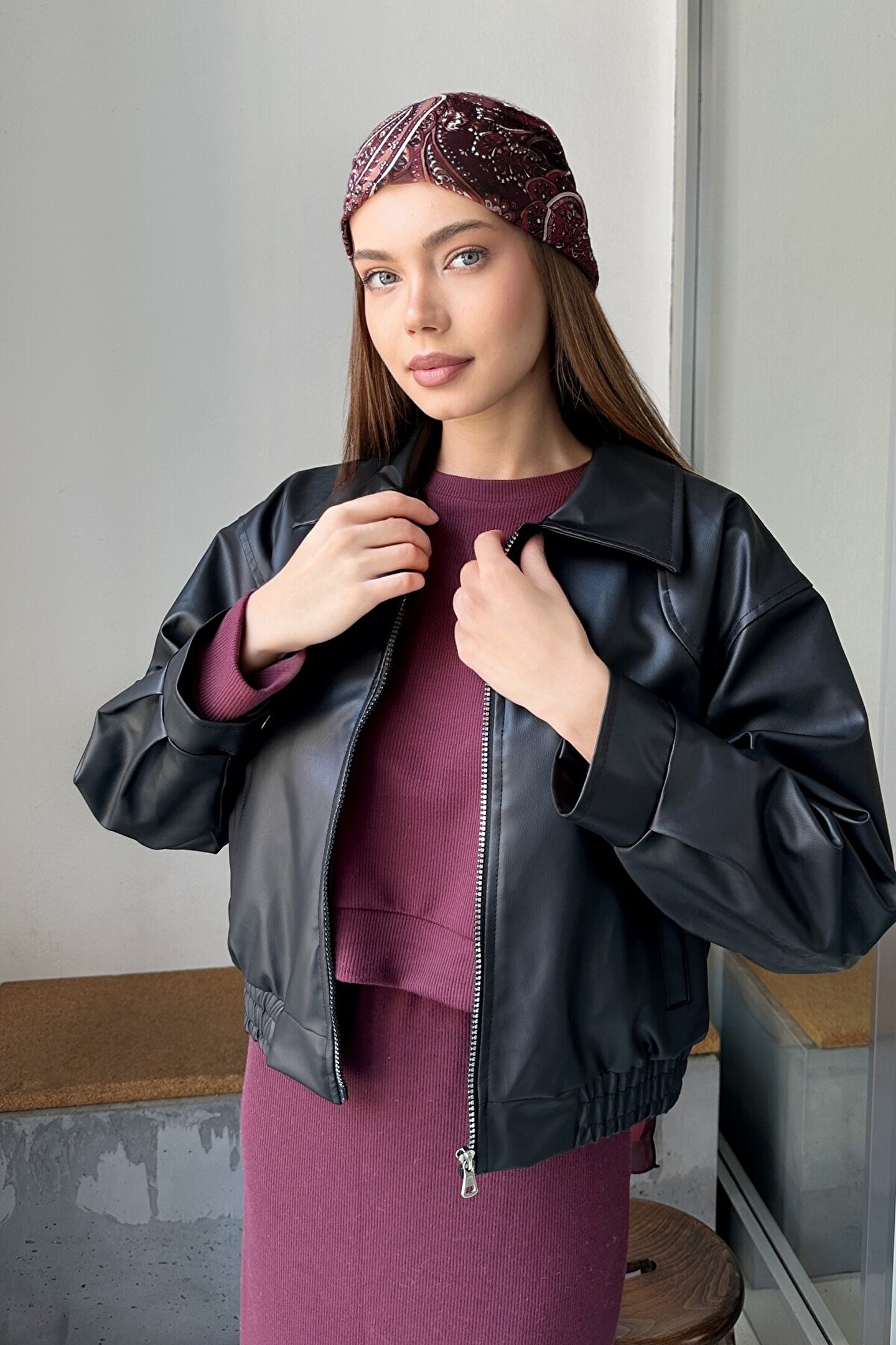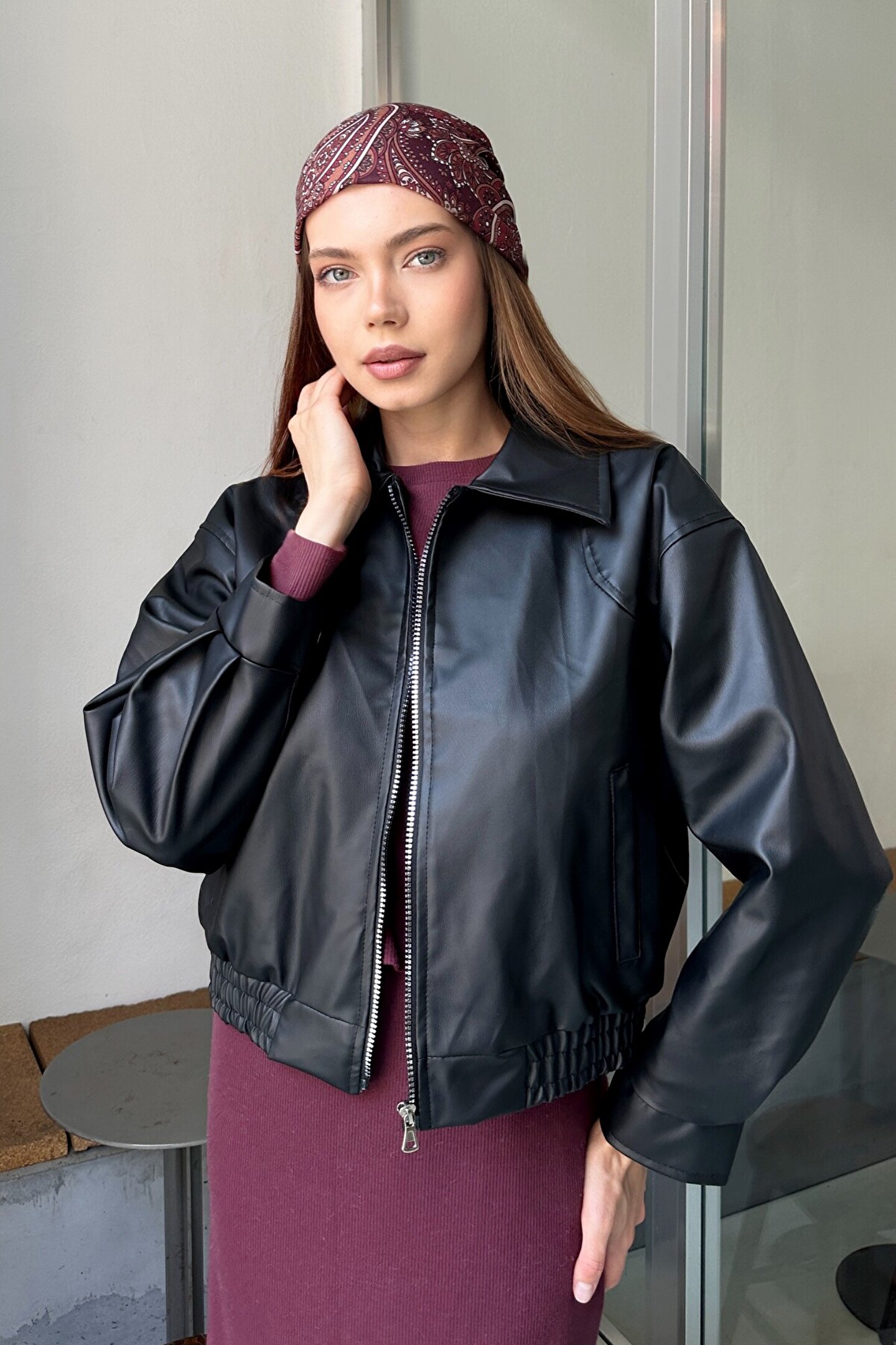 moda armanc Yakalı Suni Deri Bomber Ceket