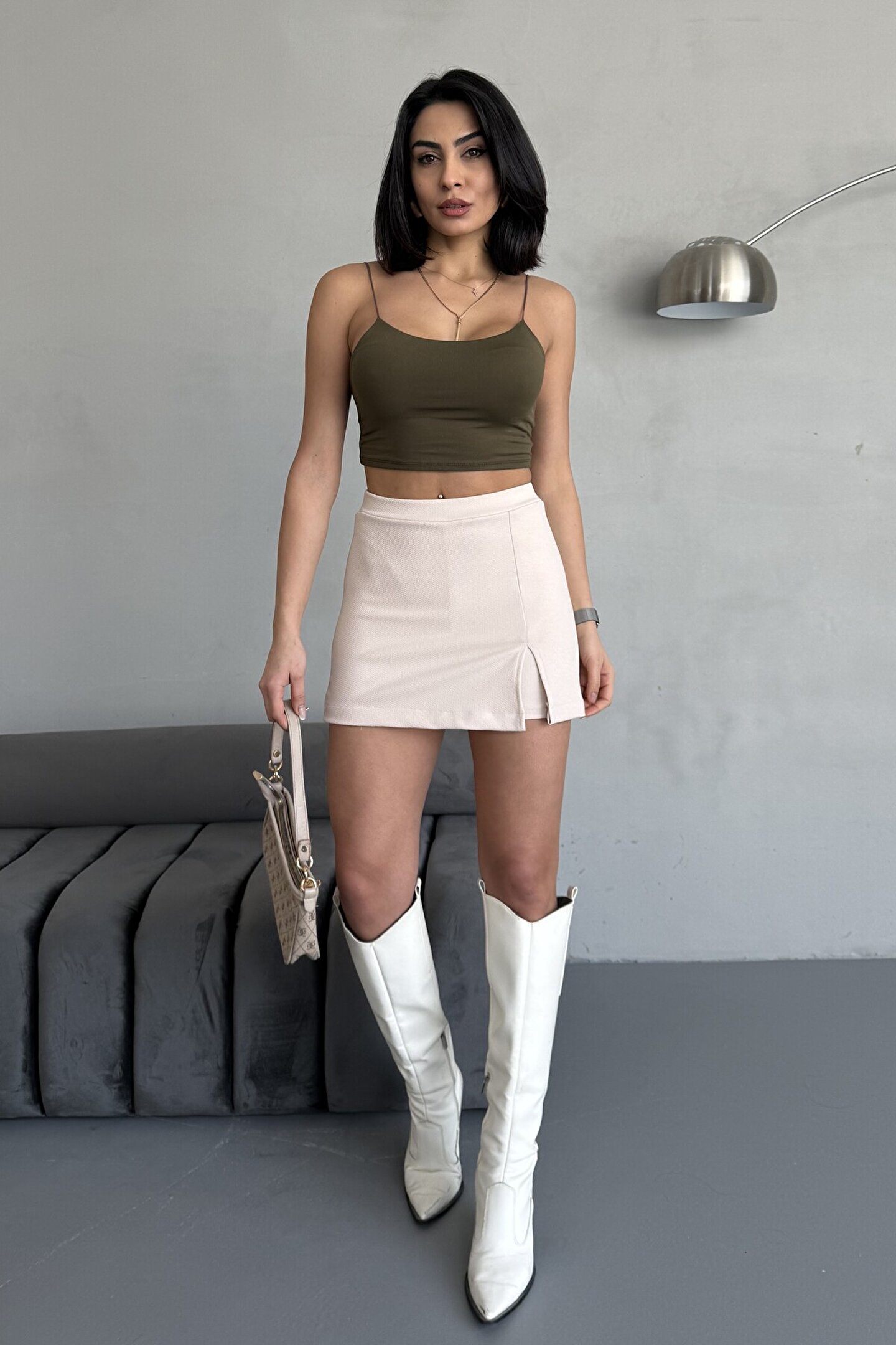 Model Ölçüleri: Boy: 172 Kilo: 58 (Modelin üzerindeki ürün S bedendir).; ; Ürün 5 rengiyle stoklarda.; ; Yaz sezonuna özel tasarlanmış yırtmaç detaylı şort etek, günlük kullanım için idealdir.; ; Basic koleksiyonun sadeliğini yansıtan bu şort etek, her gardıropta temel parçalardan biridir.; ; Yıkama talimatlarına uygun şekilde bakım yapıldığında uzun ömürlü kullanım vaat eder.; ; Yırtmaç detayı sayesinde hareket özgürlüğü kazandırırken şık bir görünüm sunar.; ; Mini boy kesimiyle yaz aylarının vazgeçilmez parçası haline gelirken vücut hatlarını zarifçe sararak dikkat çeker.