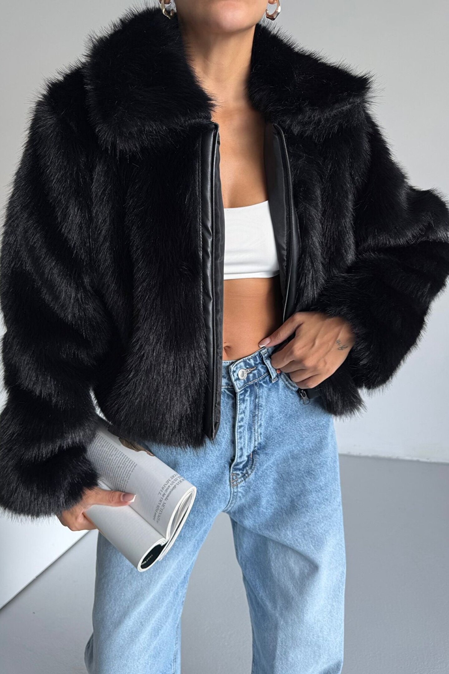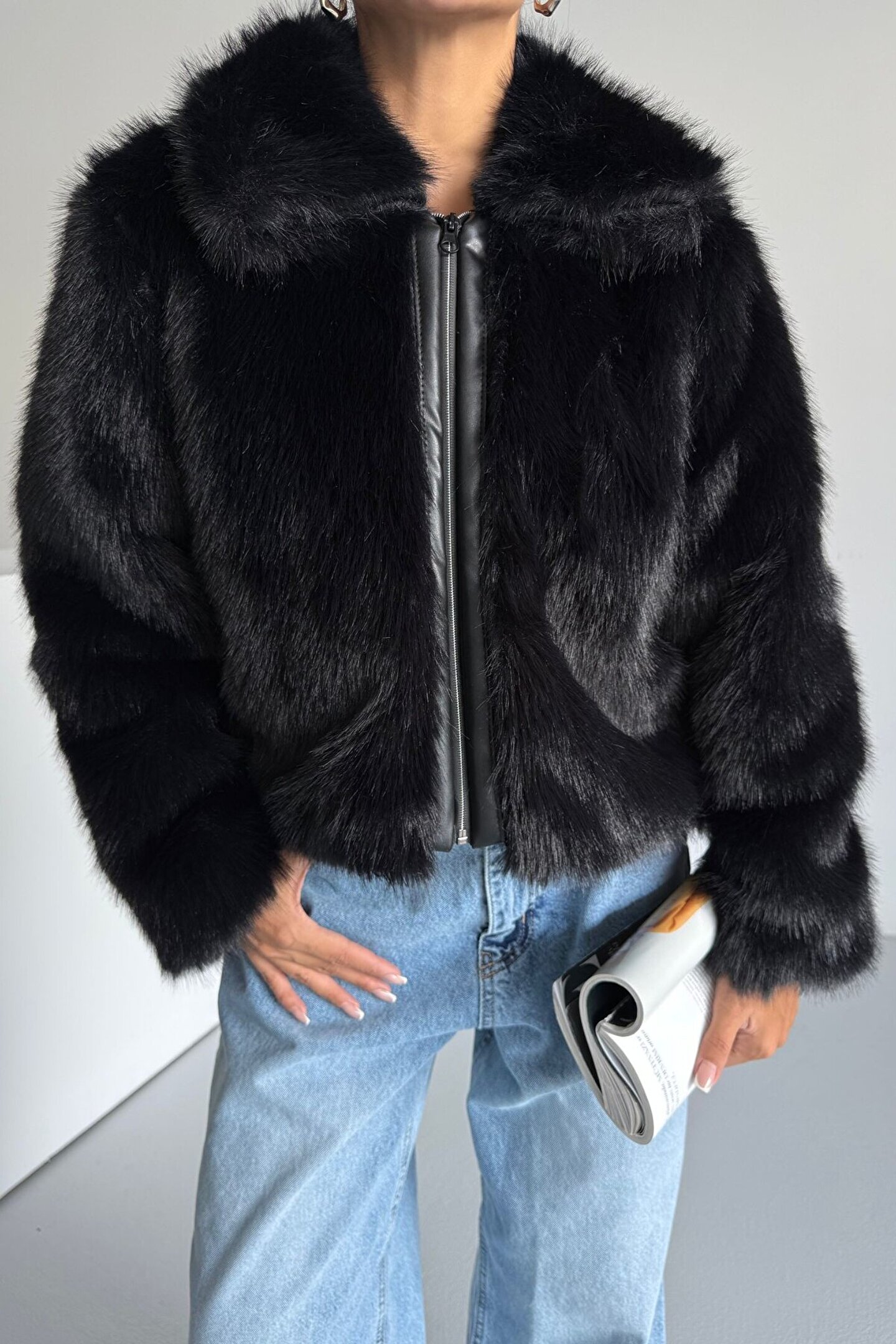 Kış stilinize sofistike bir dokunuş katın!; Yeni sezonun trend parçası olan fermuarlı suni kürk mont, şıklığı ve sıcaklığı bir arada sunar.; ; Yumuşacık dokusu, kaliteli peluş görünümü ve konforlu yapısıyla hem günlük kullanımda hem de özel davetlerde stilinizi ön plana çıkarır.; ; Kaliteli suni kürk kumaş ile ultra yumuşak ve sıcak tutan yapı; Fermuarlı kapanış ile modern ve kullanışlı tasarım; Yüksek moda standartlarında üretim; Kısa kesim ile vücut formunu vurgulayan şık görünüm; Günlük kombinlerinizde jean, tayt, etek ve botlarla mükemmel uyum sağlar;