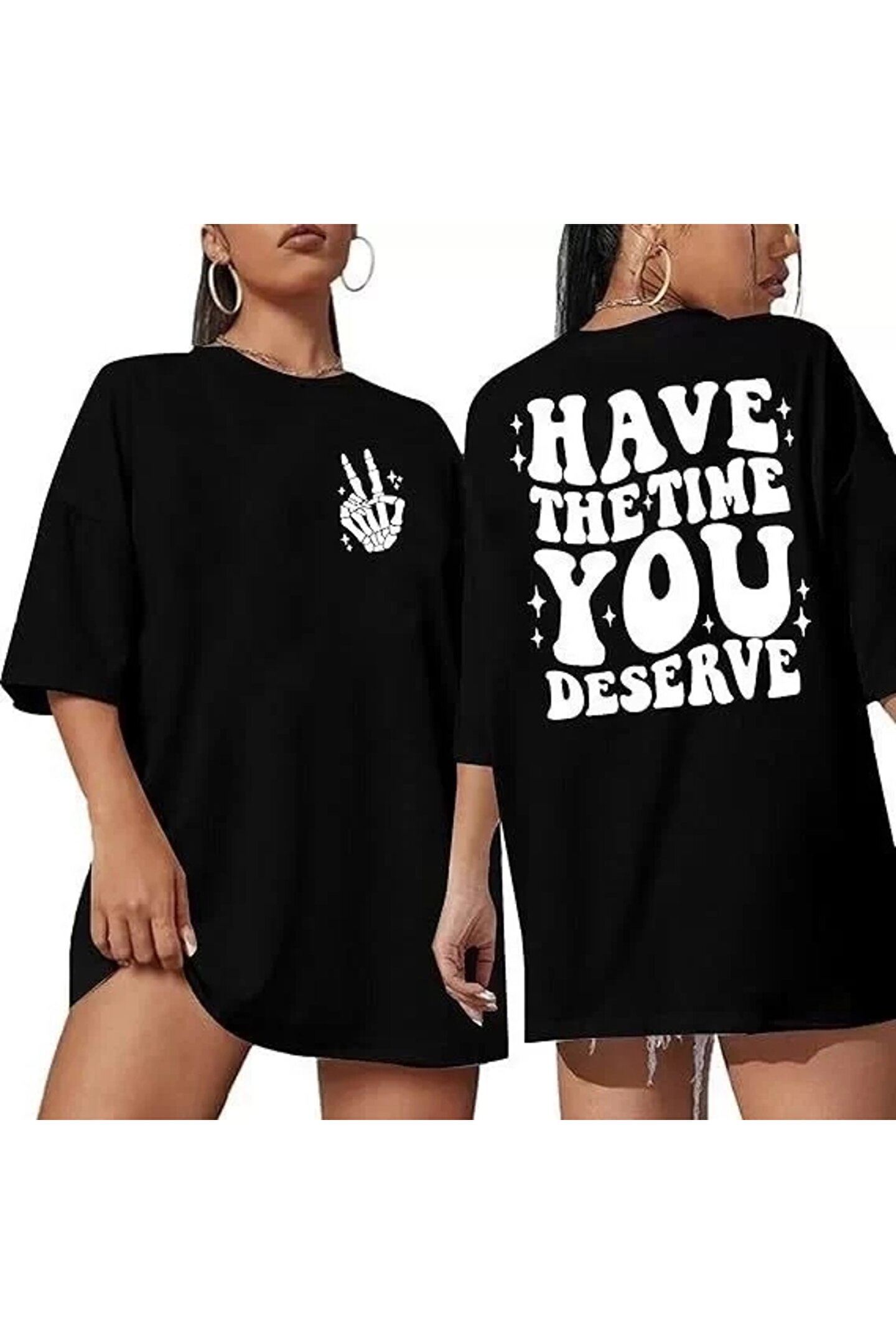 MODA Baskılı Kadın T-shirt - Siyah