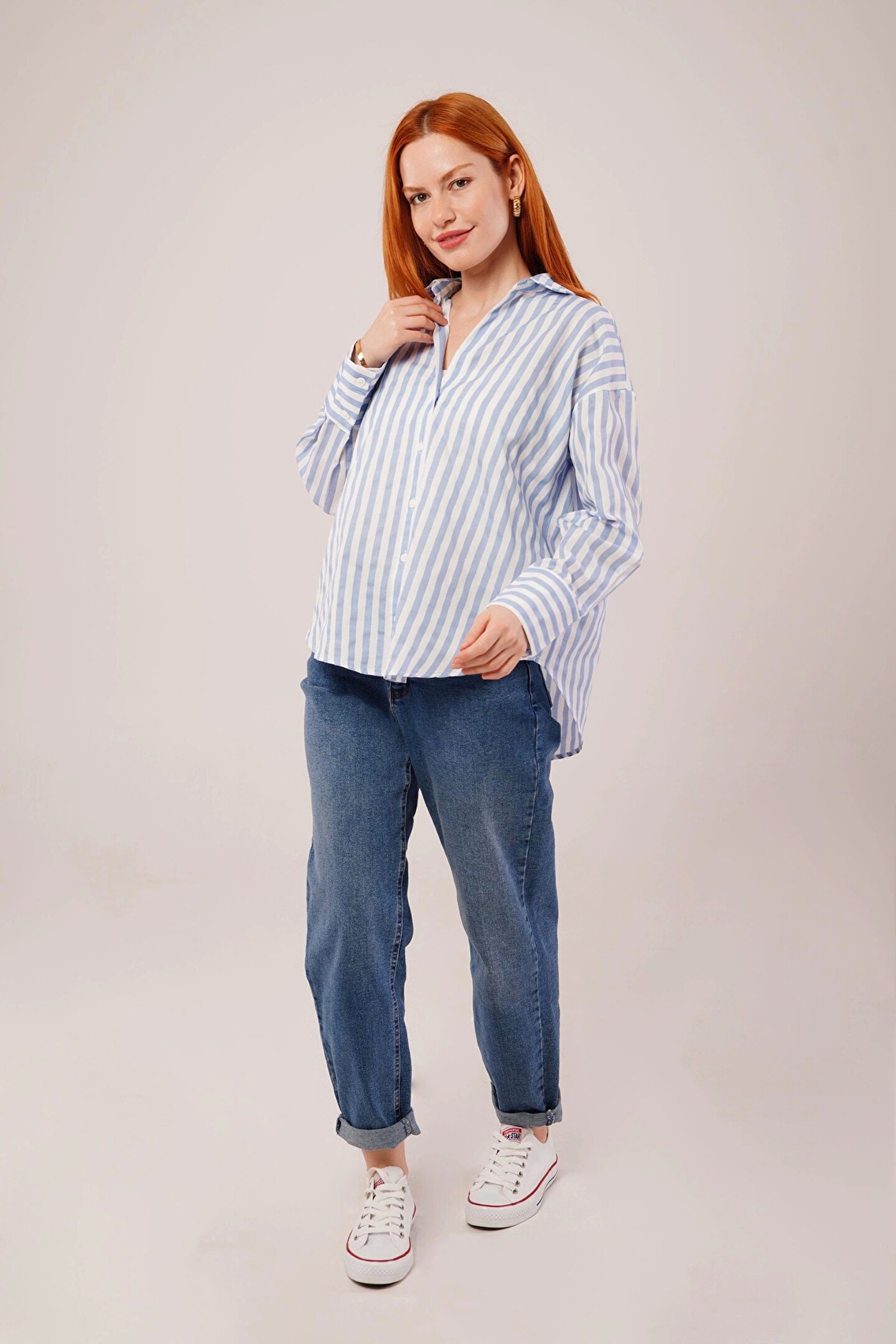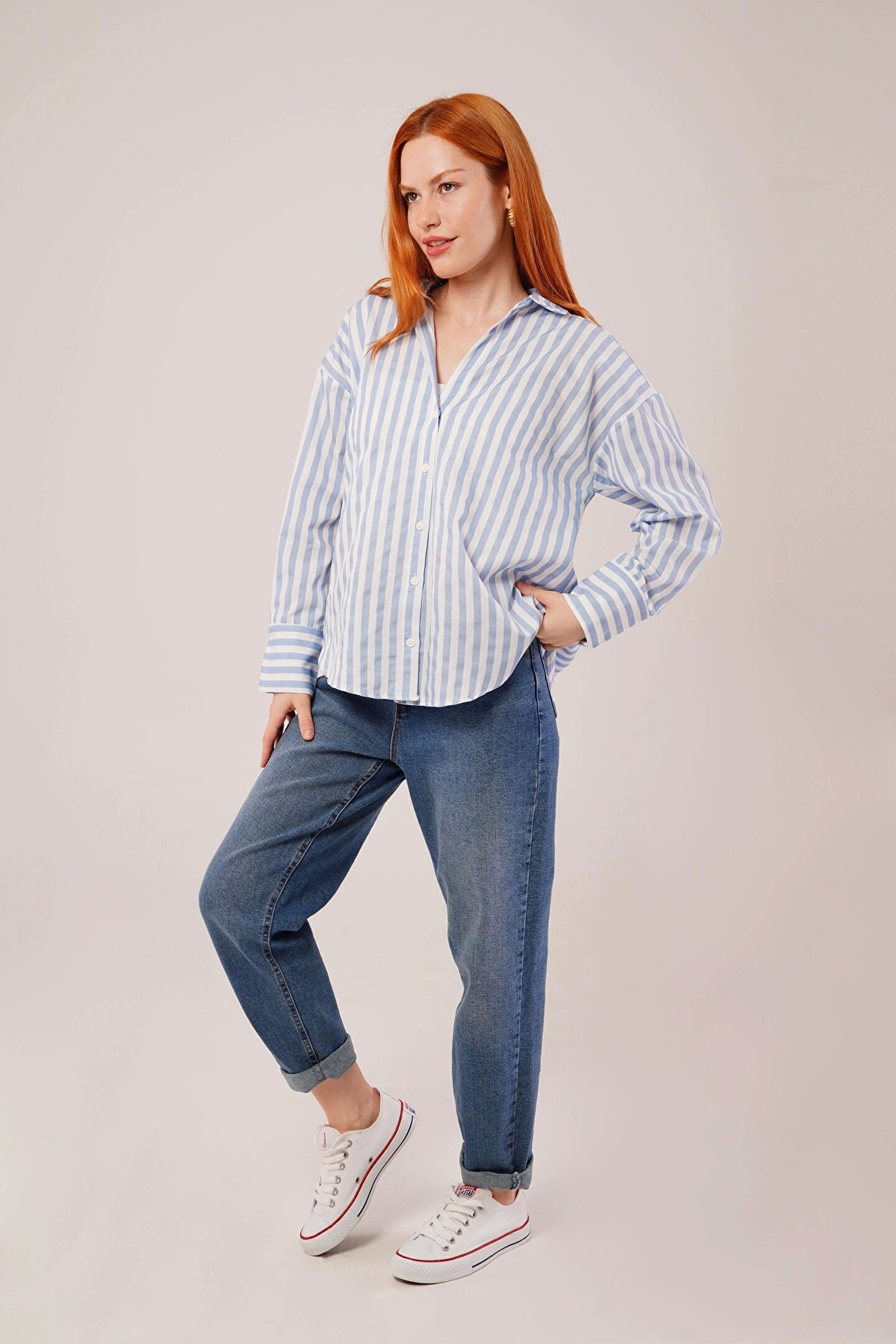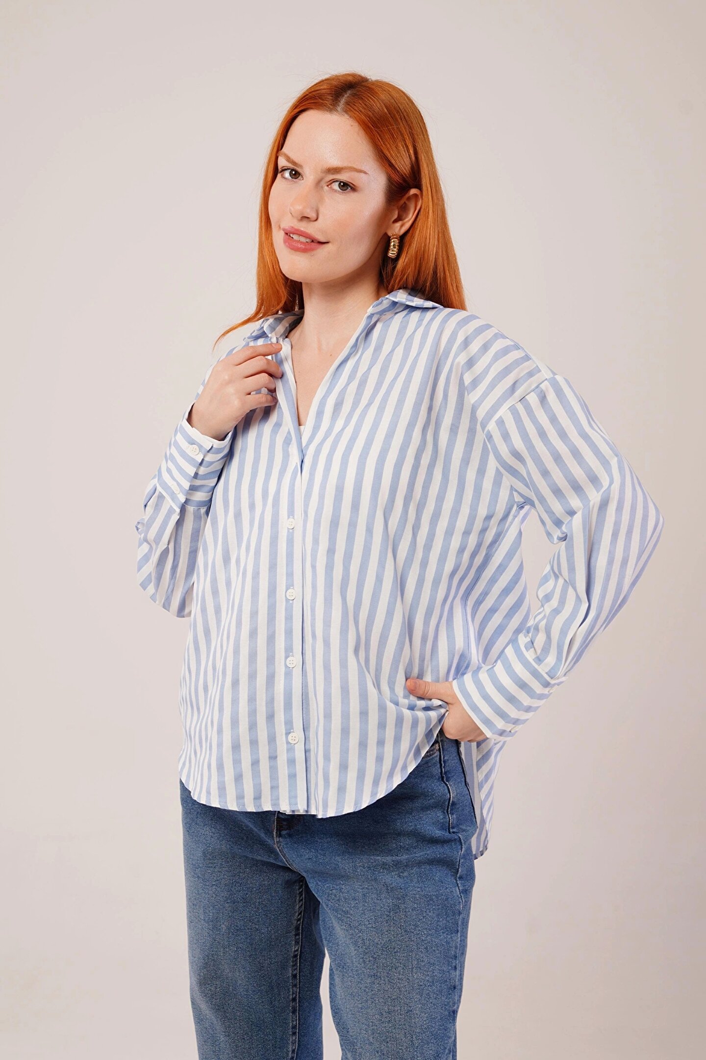 Çizgili Rahat Kesim Mavi Gömlek