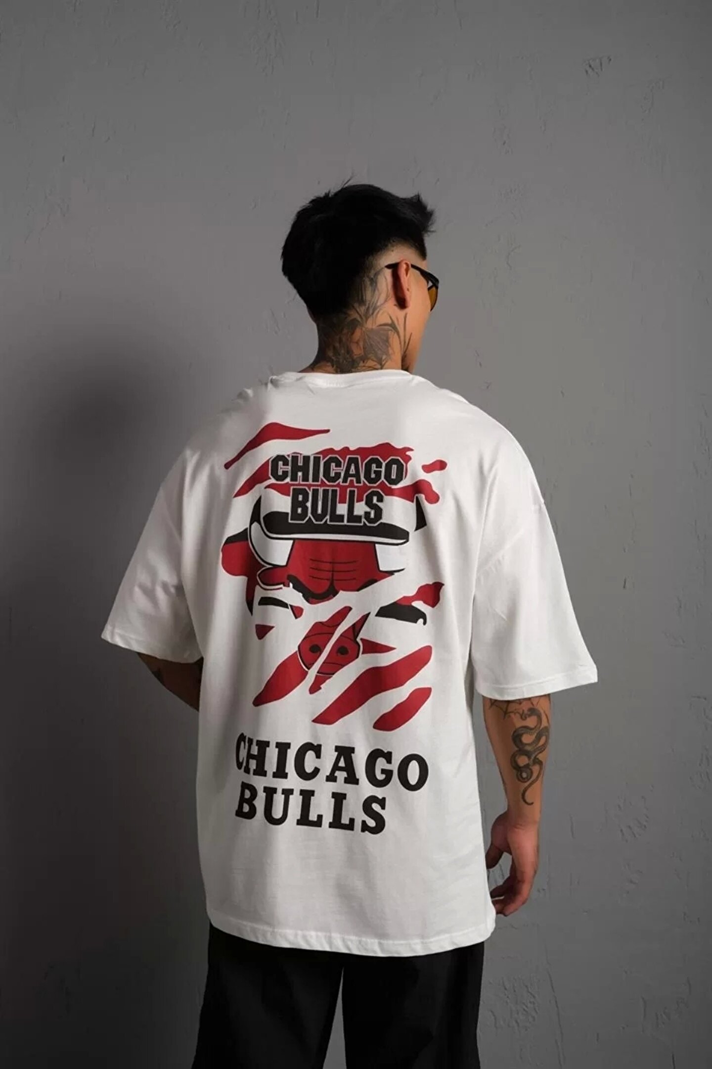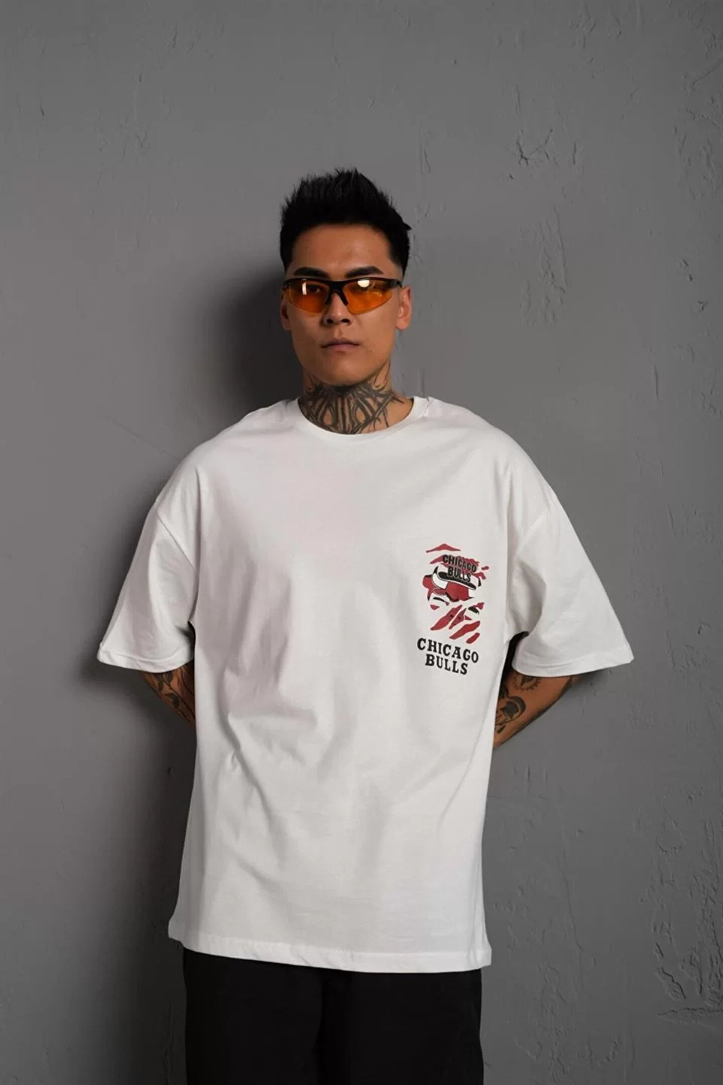 MODA CS Erkek Sırt Baskılı A Kalite Oversize T-shirt - Beyaz