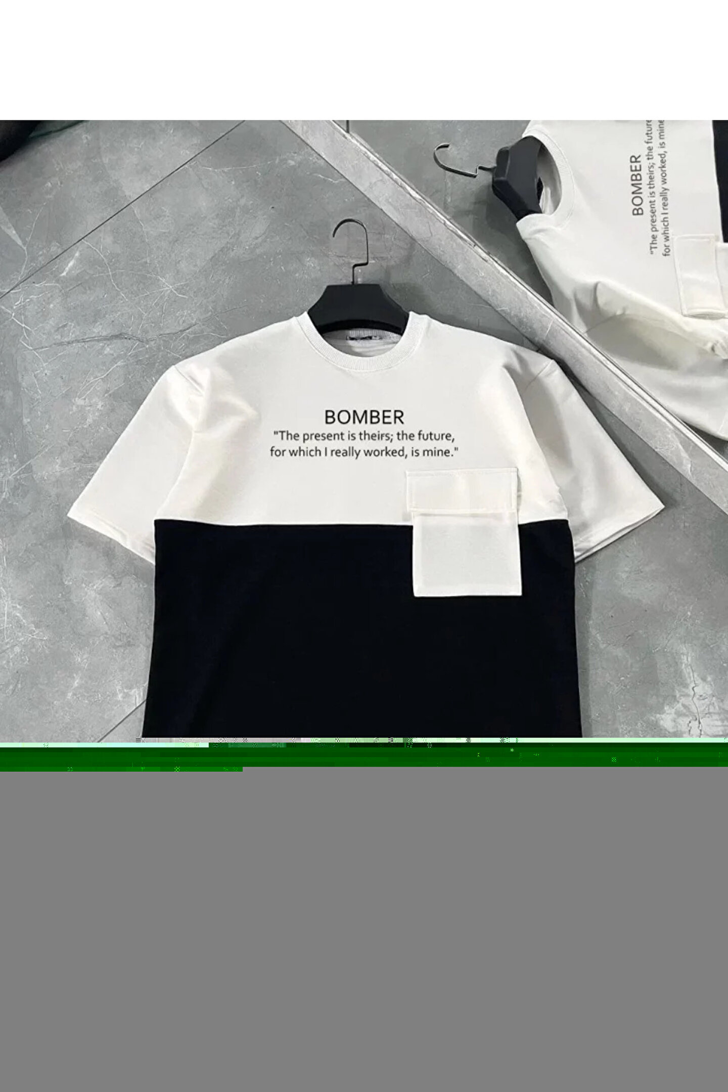 Unisex Torba Cep Detaylı Parçalı T-Shirt - Siyah