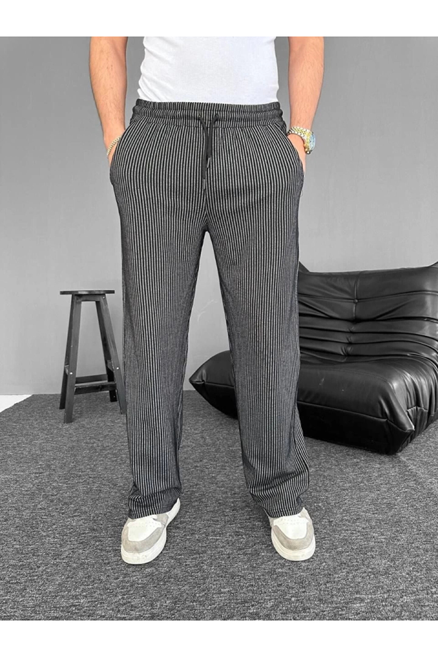 MDB u Yolu Çizgili Cepli Pantalon iyah