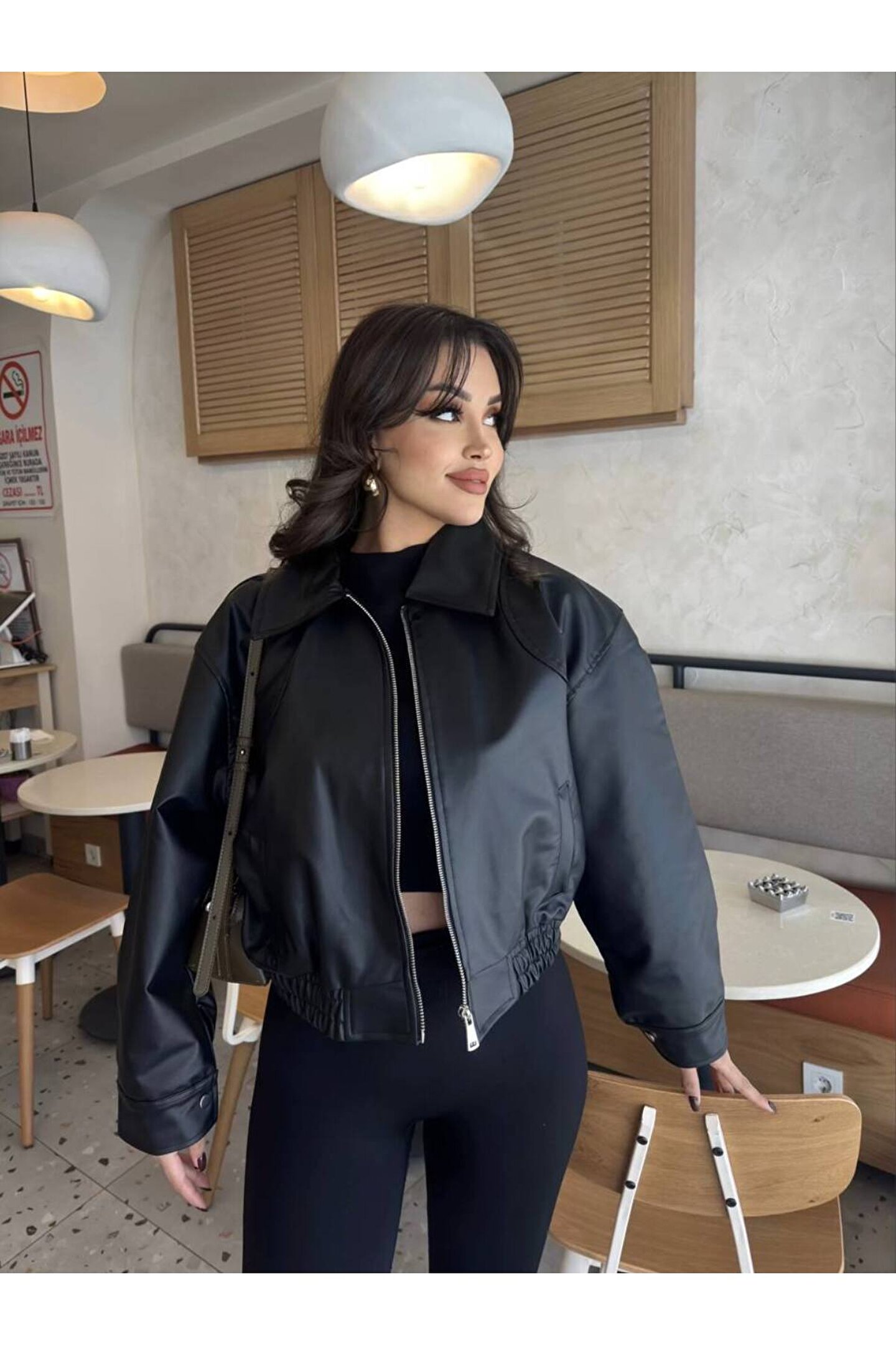 - Suni deri materyali ile şık ve dayanıklı bir kullanım sunar.; - Uzun kollu tasarımı, mevsim geçişlerinde ideal konfor sağlar.; - Astarlı yapısı sayesinde rahat bir iç yüzey deneyimi yaşatır.; - Ceket yaka detayı ile klasik bomber ceket görünümünü modernleştirir.; - Fleto cep tasarımı, pratik kullanım için idealdir.; - Günlük kullanım için uygun, rahat ve stil sahibi bir seçenektir.; - Fermuarlı kapama şekli kolay giyilip çıkartmayı sağlar.; - Tüm sezonlar boyunca tercih edilebilecek çok yönlülükte tasarlanmıştır.; - Slim silueti ile feminen ve zarif bir görünüm kazandırır.; - Düz kesimi sayesinde vücut hatlarınıza mükemmel uyum sağlar.; - Payet detayları ile göz alıcı bir parlaklık katarken, düz deseniyle sadelikten yana olanların tercihi olur.; - Sürdürülebilirlik detayına sahip olması çevre dostu bir tercih yapmanızı sağlar.; - Young koleksiyonunun enerjisini yansıtan genç ve dinamik bir stil sunar.; - Türkiye'de üretilmiş olmasıyla yerel