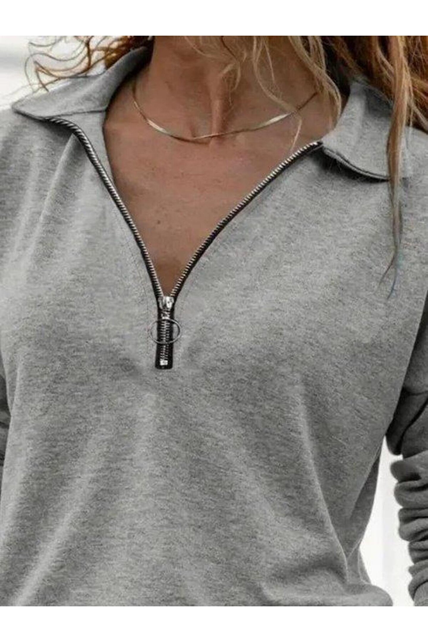 Moda Ebrar Kadın Uzun Kollu Yakalı Fermuarlı Iki Iplik Bluz