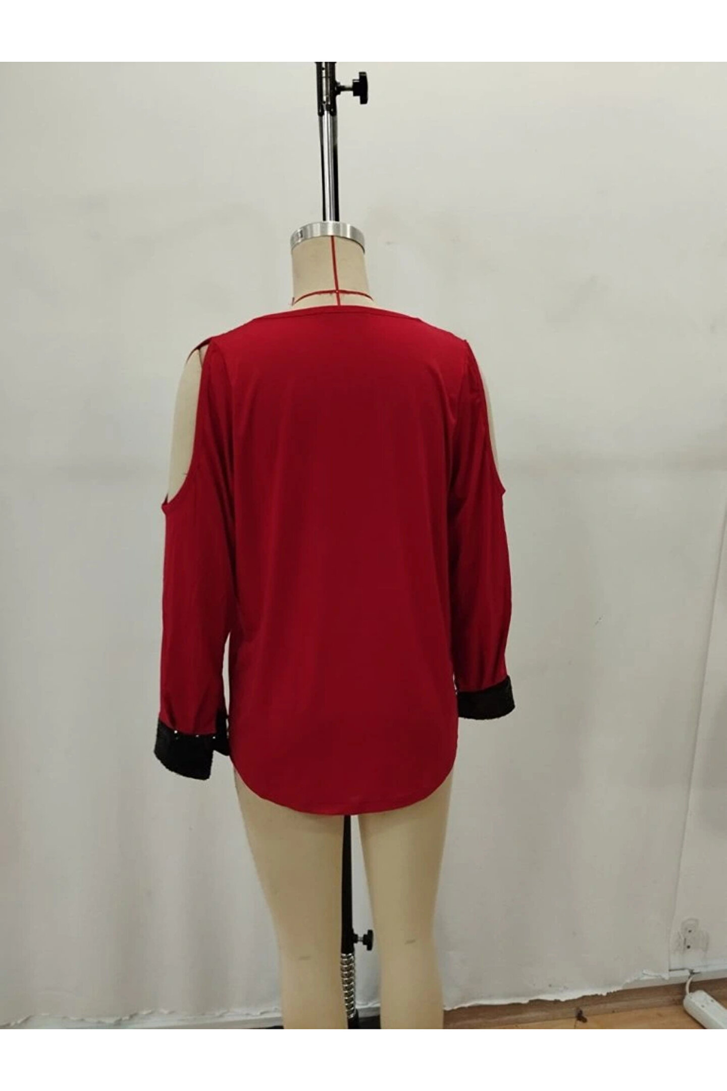 Kadın Uzun Kollu V Yakalı Omuzlardan Açık Sandy Bluz