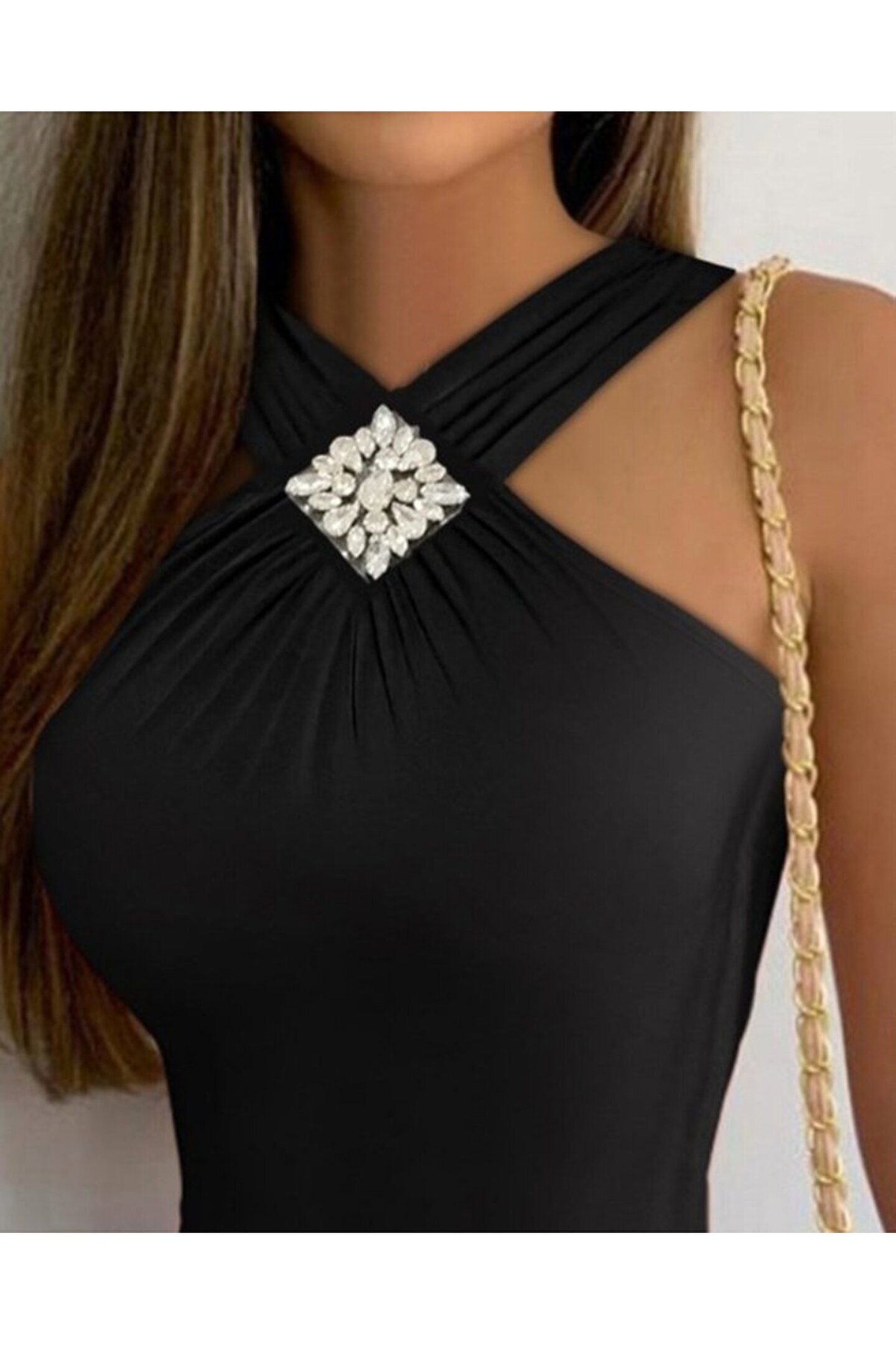 Kadın Yakası önden çaprazlı Taş Detaylı Viskon Bluz