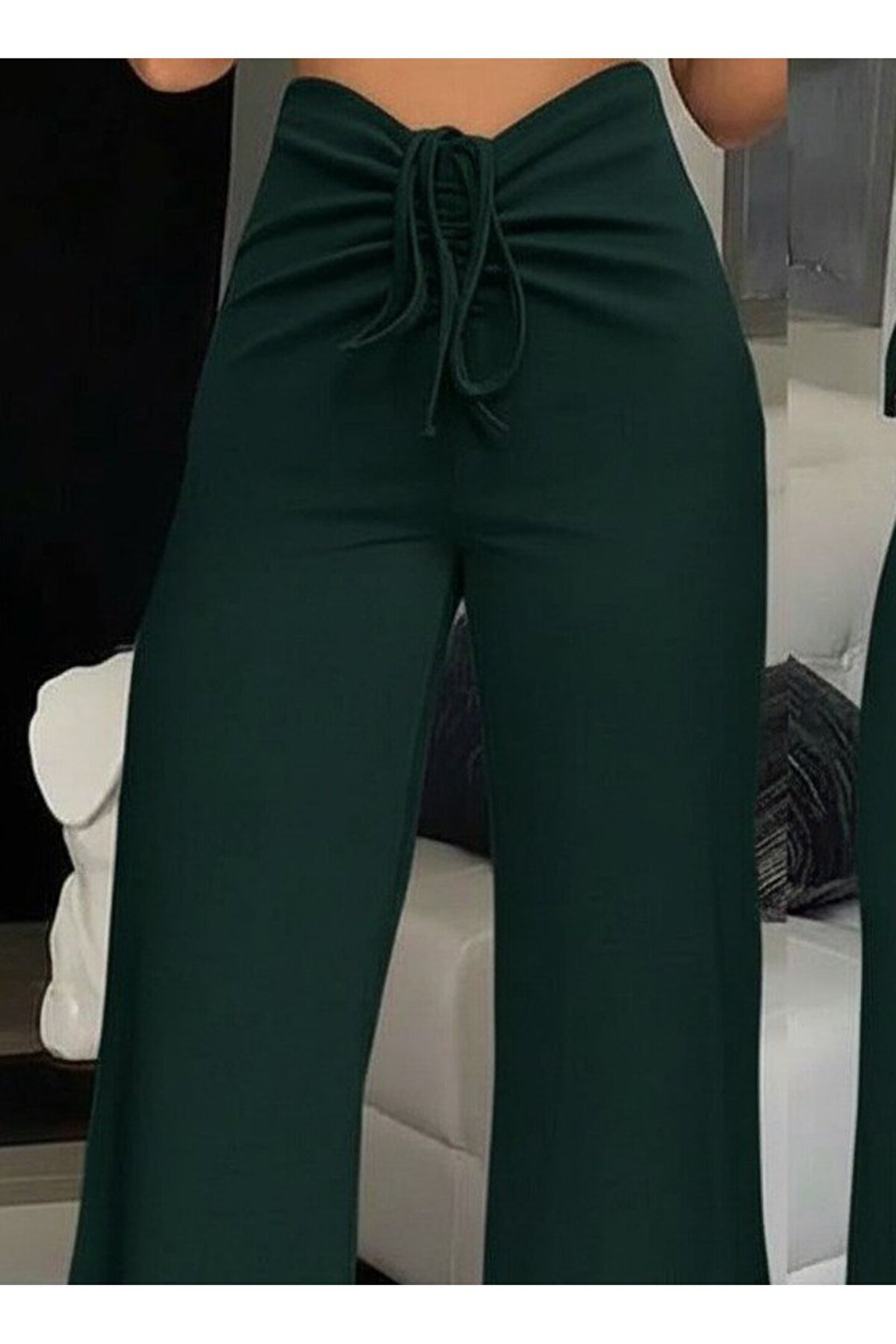 MODA EQURİ Kadın Yüksek Bel önden Büzgülü Ispanyol Ithal Krep Pantolon