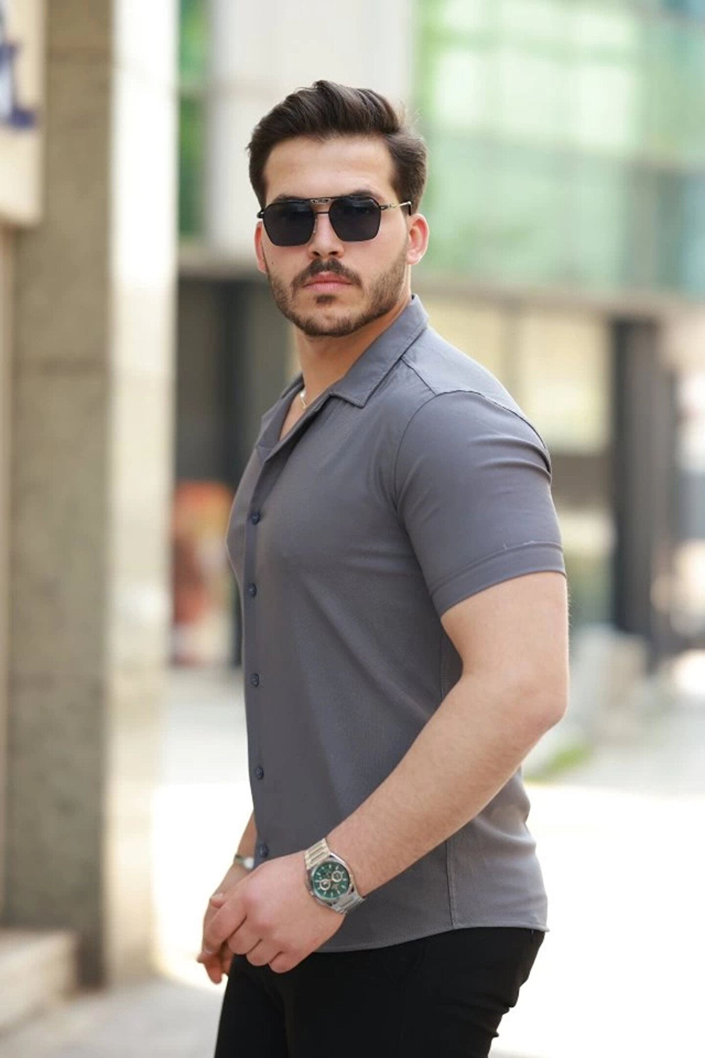 Erkek Apaj Yaka Kısa Kollu Gömlek