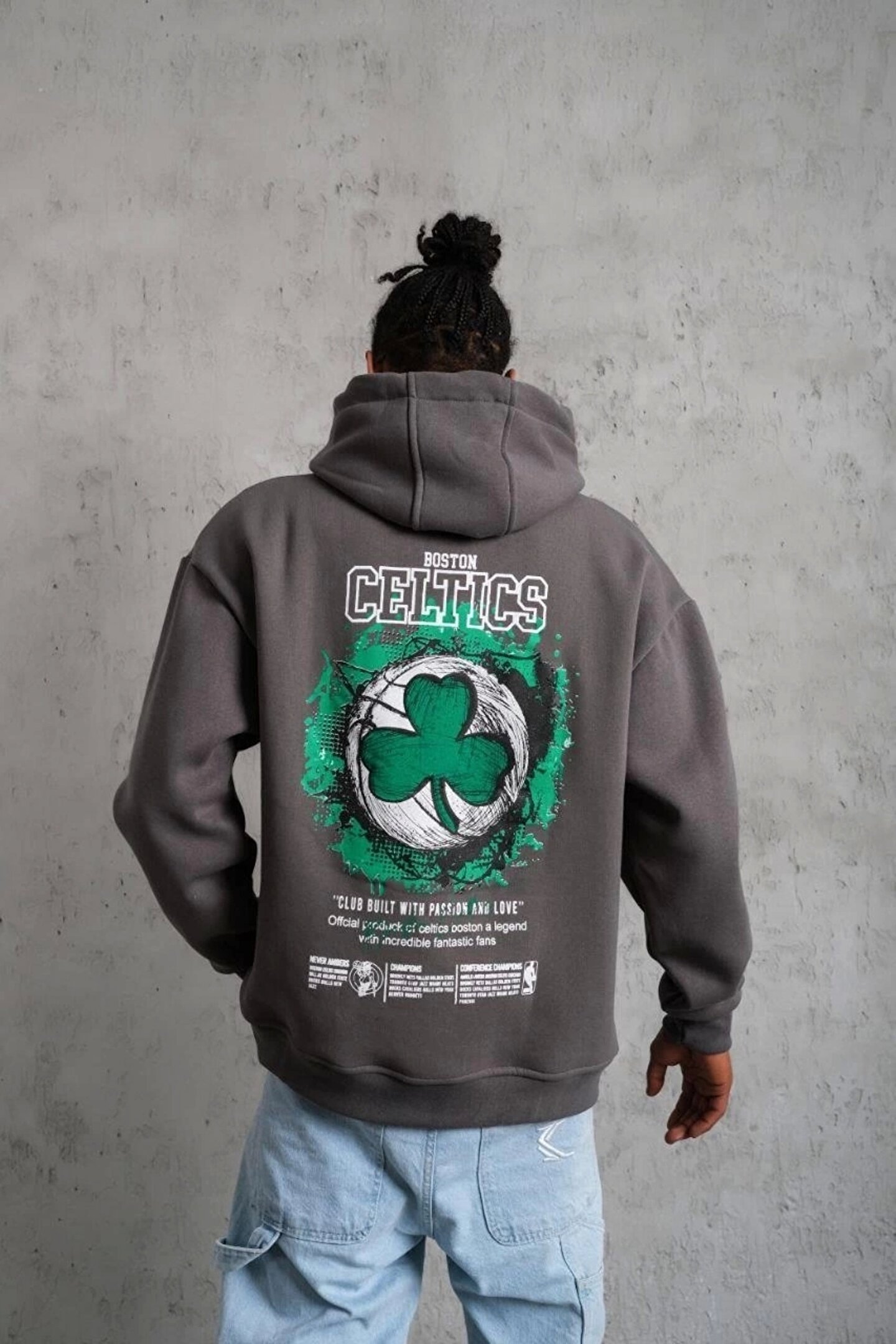 MODA Erkek Baskılı Kapüşonlu ve Kordon İpli Sweat - Gri