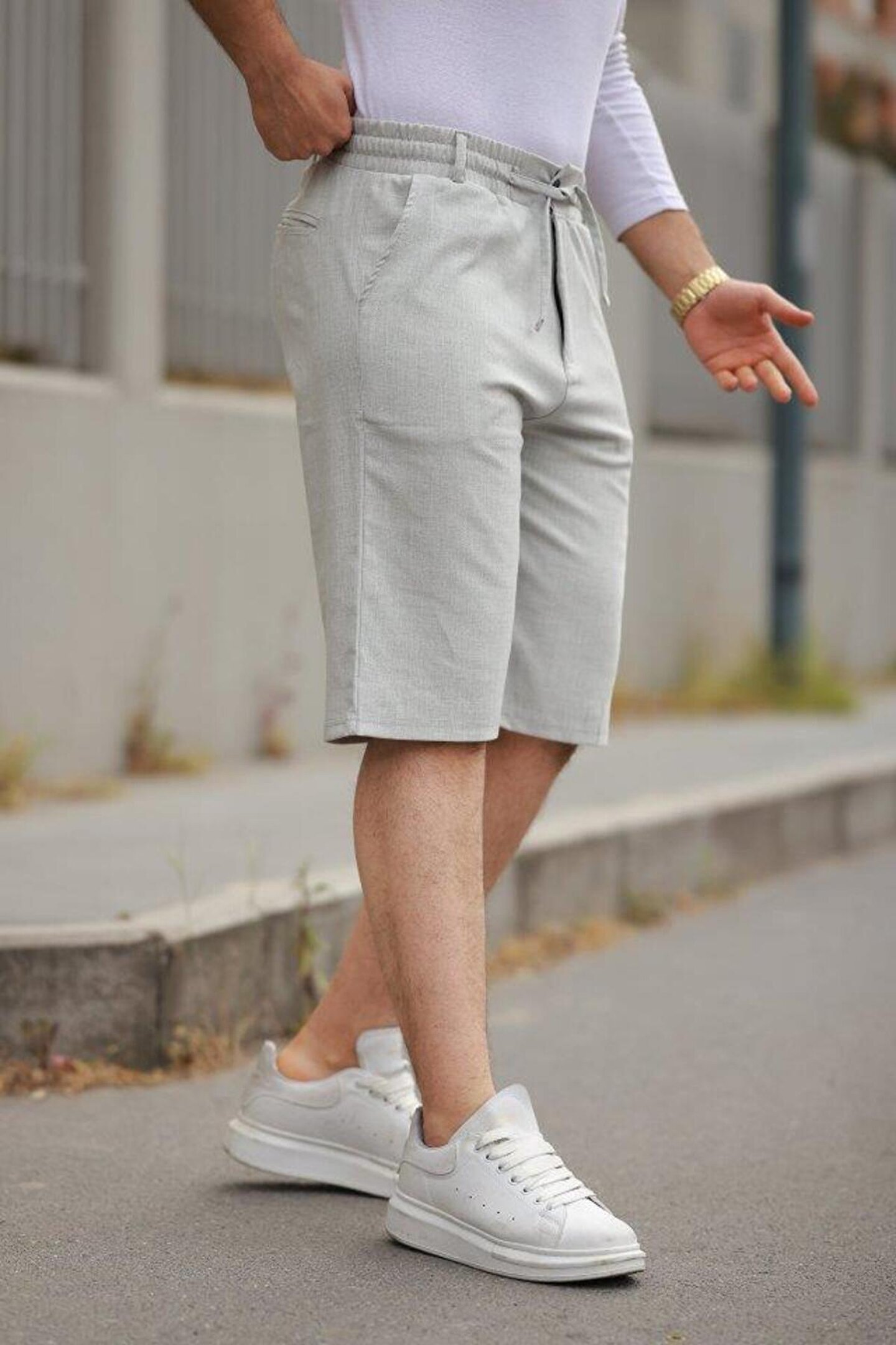 MODA Erkek Beli Bağcıklı Ve Düğmeli Bezayağı Kumaş şort